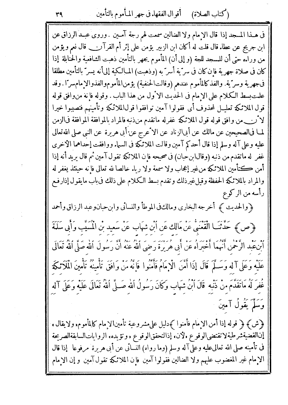 (ش) (قوله إذا أمن الإِمام فأمنوا) دليل على مشروعية تأمين الإِمام كالمأموم "ولا يقال" إن القضية شرطية لا تقتضى الوقوع "لأن" إذ التحقق الوقوع "وتؤيده" الروايات السابقة الصريحة في تأمينه صلى الله تعالى عليه وعلى آله وسلم