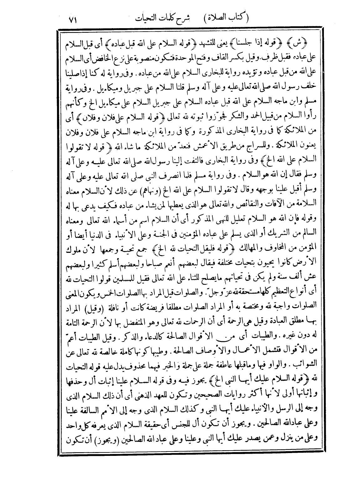 (قوله السلام عليك أيها النبي الخ) يجوز فيه وفي قوله السلام علينا إثبات أن وحذفها وإثباتها أولى لأنها أكثر روايات الصحيحين وتكون للعهد الذهني أي أن ذلك السلام الذي وجه إلى الرسل والأنبياء عليك أيها النبي وكذلك السلام الذي وجه إلى الأمم السالفة علينا وعلى عباد الله الصالحين. ويجوز أن تكون أن للجنس أي حقيقة السلام الذي يعرفه كل واحد وعلى من ينزل وعمن يصدر عليك أيها النبي وعلينا وعلى عباد الله الصالحين (ويجوز) أن تكون