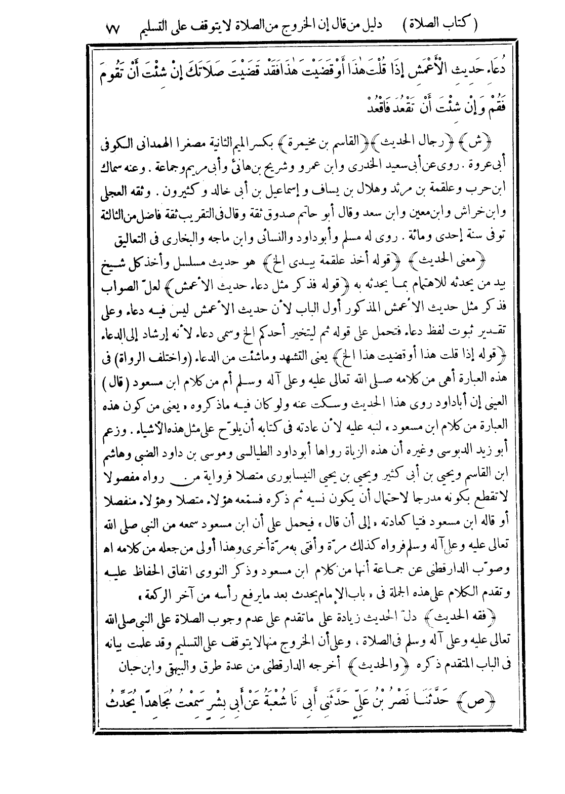 دُعَاءِ حَدِيثِ الأَعْمَشِ "إِذَا قُلْتَ هَذَا أَوْ قَضَيْتَ هَذَا فَقَدْ قَضَيْتَ صَلاَتَكَ إِنْ شِئْتَ أَنْ تَقُومَ فَقُمْ وَإِنْ شِئْتَ أَنْ تَقْعُدَ فَاقْعُدْ".