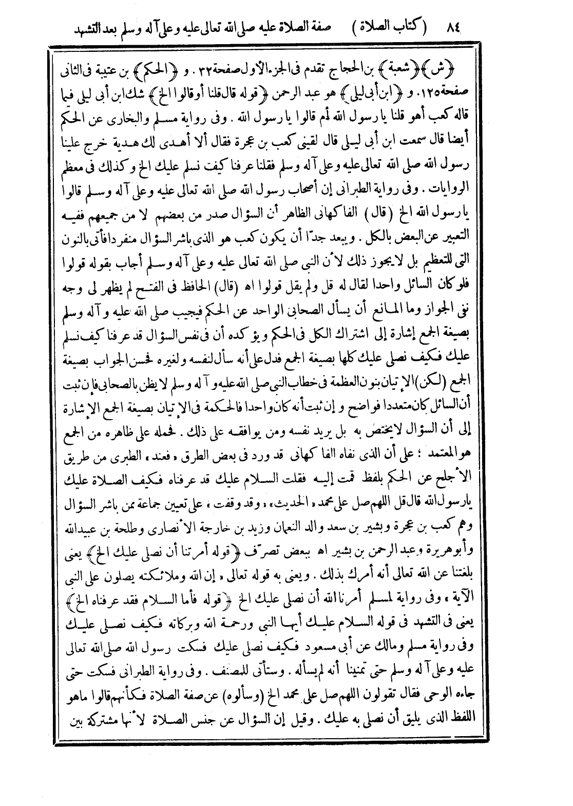 (قال) الحافظ في الفتح لم يظهر لي وجه نفى الجواز وما المانع أن يسأل الصحابي الواحد عن الحكم فيجيب صلى الله عليه وآله وسلم بصيغة الجمع إشارة إلى اشتراك الكل في الحكم ويؤكده أن في نفس السؤال قد عرفنا كيف نسلم عليك فكيف نصلي عليك كلها بصيغة الجمع فدل على أنه سأل لنفسه ولغيره فحسن الجواب بصيغة الجمع
