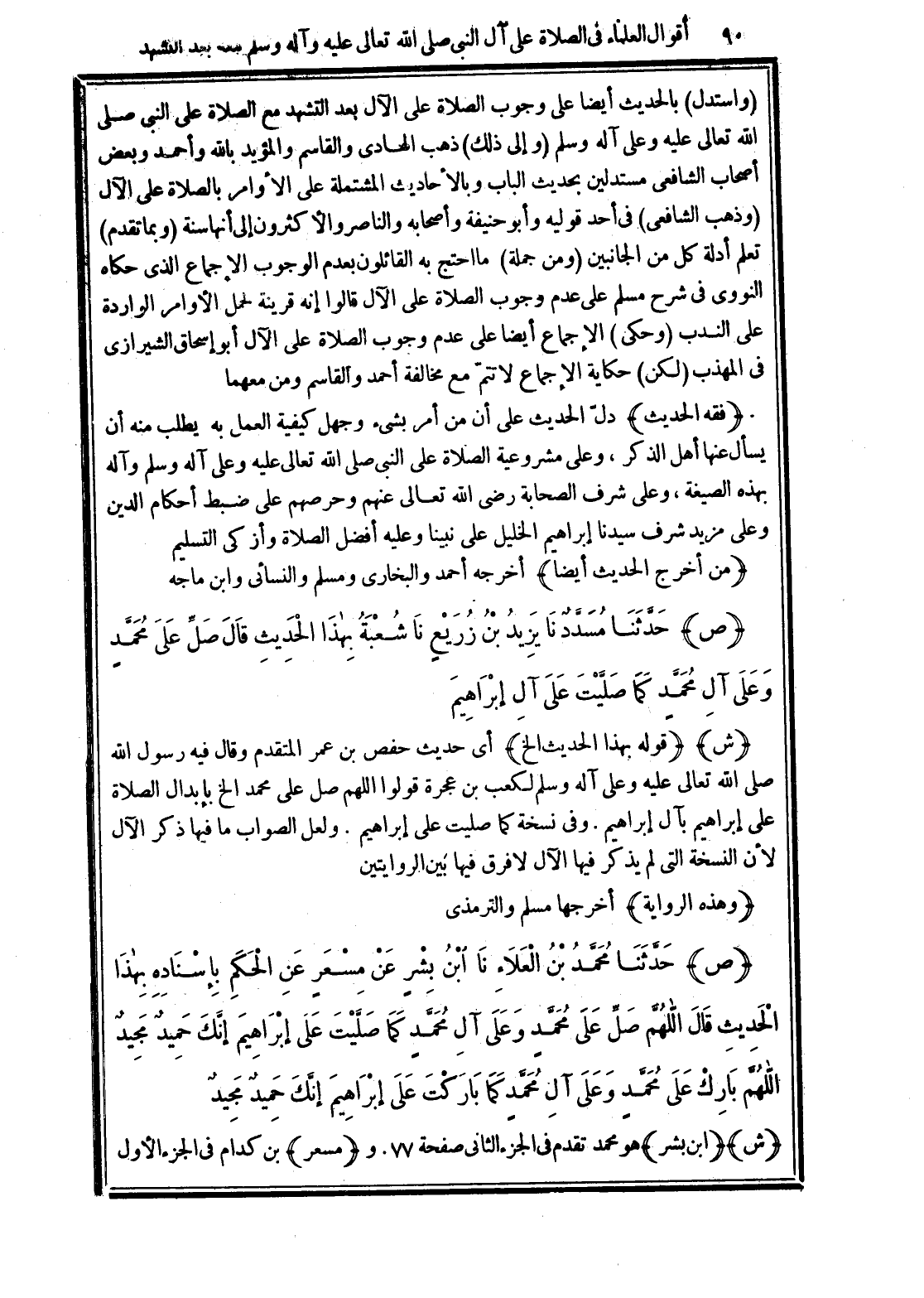 (ص) حَدَّثَنَا مُحَمَّدُ بْنُ الْعَلاَءِ نَا ابْنُ بِشْرٍ عَنْ مِسْعَرٍ عَنِ الْحَكَمِ بِإِسْنَادِهِ بِهَذَا الْحَدِيثِ قَالَ "اللهُمَّ صَلِّ عَلَى مُحَمَّدٍ وَعَلَى آلِ مُحَمَّدٍ كَمَا صَلَّيْتَ عَلَى إِبْرَاهِيمَ إِنَّكَ حَمِيدٌ مَجِيدٌ اللهُمَّ بَارِكْ عَلَى مُحَمَّدٍ وَعَلَى آلِ مُحَمَّدٍ كَمَا بَارَكْتَ عَلَى آلِ إِبْرَاهِيمَ إِنَّكَ حَمِيدٌ مَجِيدٌ".