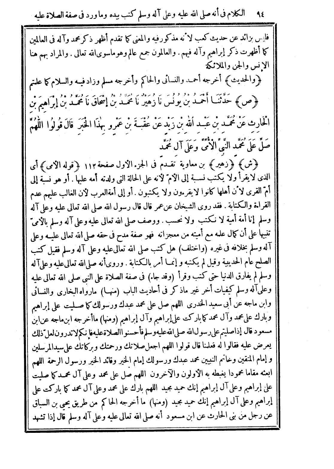 (ص) حَدَّثَنَا أَحْمَدُ بْنُ يُونُسَ نَا زُهَيْرٌ نَا مُحَمَّدُ بْنُ إِسْحَاقَ نَا مُحَمَّدُ بْنُ إِبْرَاهِيمَ بْنِ الْحَارِثِ عَنْ مُحَمَّدِ بْنِ عَبْدِ اللهِ بْنِ زَيْدٍ عَنْ عُقْبَةَ بْنِ عَمْرٍو بِهَذَا الْخَبَرِ قَالَ "قُولُوا اللهُمَّ صَلِّ عَلَى مُحَمَّدٍ النَّبِيِّ الأُمِّيِّ وَعَلَى آلِ مُحَمَّدٍ".