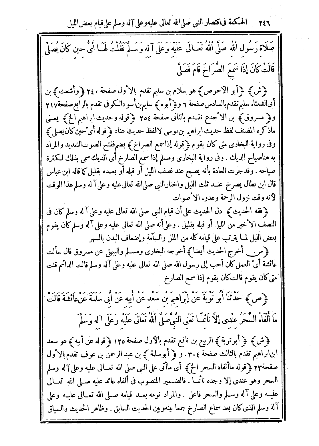 (من أخرج الحديث أيضًا) أخرجه البخاري ومسلم والبيهقي عن مسروق قال سألت عائشة أيّ العمل كان أحب إلى رسول الله صلى الله تعالى عليه وعلى آله وسلم قالت الدائم قلت متى كان يقوم قالت كان يقوم إذا سمع الصارخ