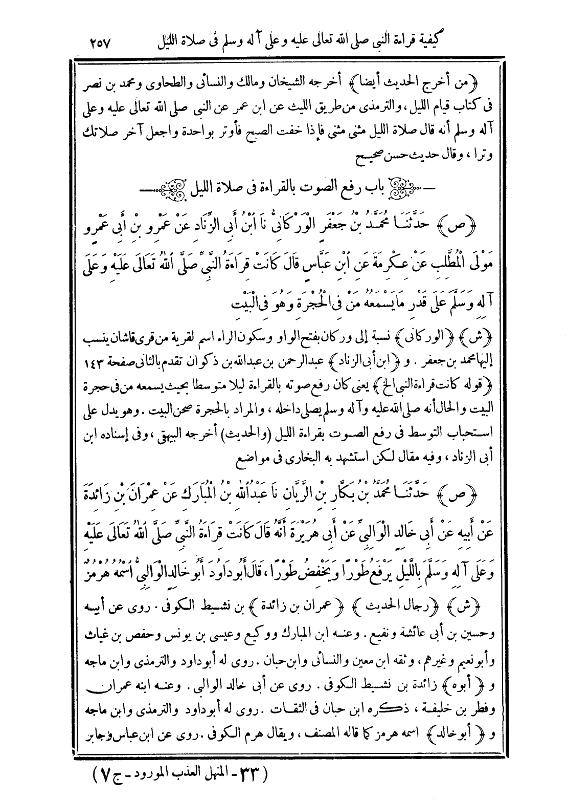 (ش) (الوركاني) نسبة إلى وركان بفتح الواو وسكون الراء اسم لقرية من قرى قاشان ينسب إليها محمد بن جعفر. و (ابن أبي الزناد) عبد الرحمن بن عبد الله بن ذكران تقدم بالثاني صفحة 143