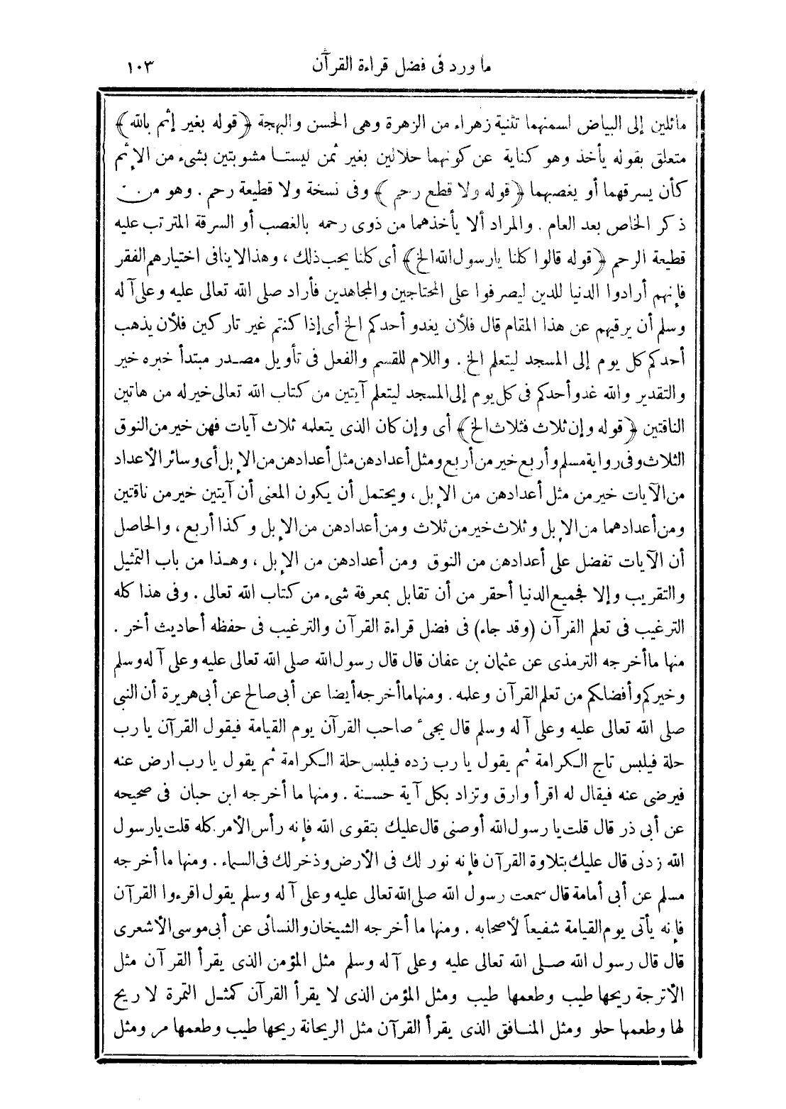 ومنها ما أخرجه مسلم عن أبي أمامة قال سمعت رسول الله صلى الله تعالى عليه وعلى آله وسلم يقول اقراءوا القرآن فإنه يأتي يوم القيامة شفيعًا لأصحابه.