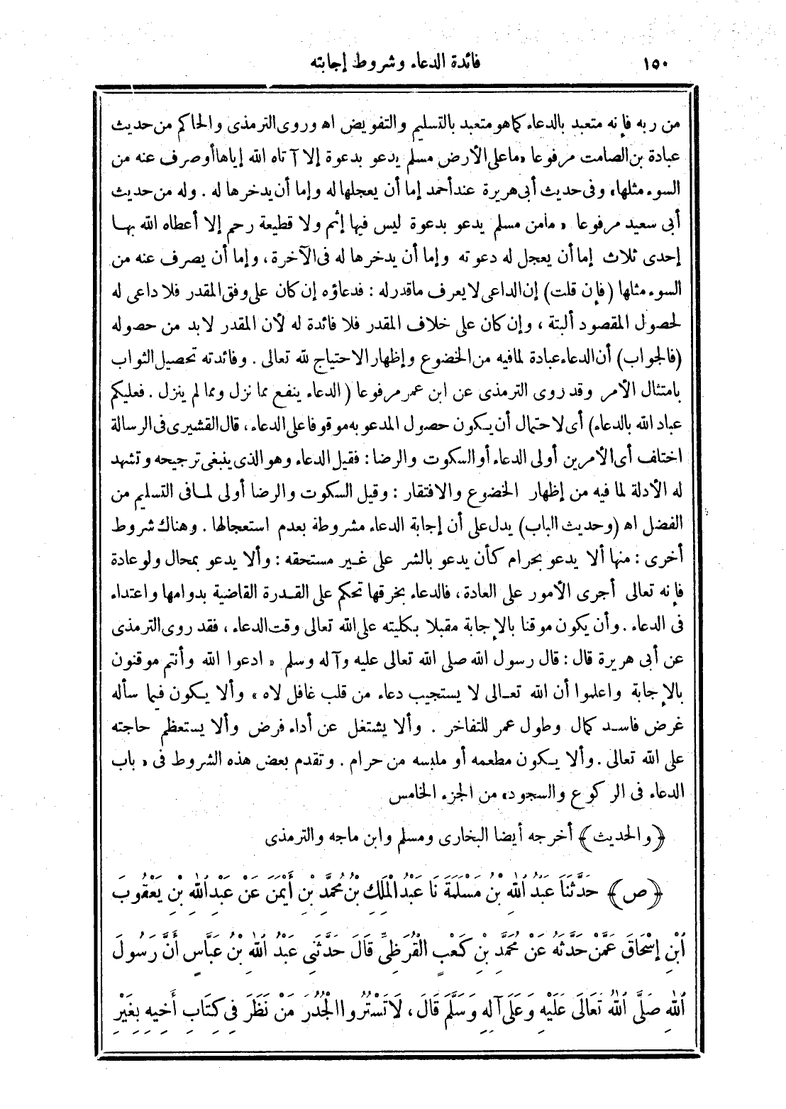 من ربه فإنه متعبد بالدعاء كما هو متعبد بالتسليم والتفويض وروى الترمذي والحاكم من حديث عبادة بن الصامت مرفوعًا "ما على الأرض مسلم يدعو بدعوة إلا أتاه الله إياها أو صرف عنه من السوء مثلها" وفي حديث أبي هريرة عند أحمد إما أن يعجلها له وإما أن يدخرها له. وله من حديث أبي سعيد مرفوعًا "ما من مسلم يدعو بدعوة ليس فيها إثم ولا قطيعة رحم إلا أعطاه الله بها إحدى ثلاث إما أن يعجل له دعوته وإما أن يدخرها له في الآخرة, وإما أن يصرف عنه من السوء مثلها (فان قلت) إن الداعي لا يعرف ما قدر له: فدعاؤه إن كان على وفق المقدر فلا داعي له لحصول المقصود ألبتة, وإن كان على خلاف المقدر فلا فائده له لأن المقدر لا بد من حصوله
