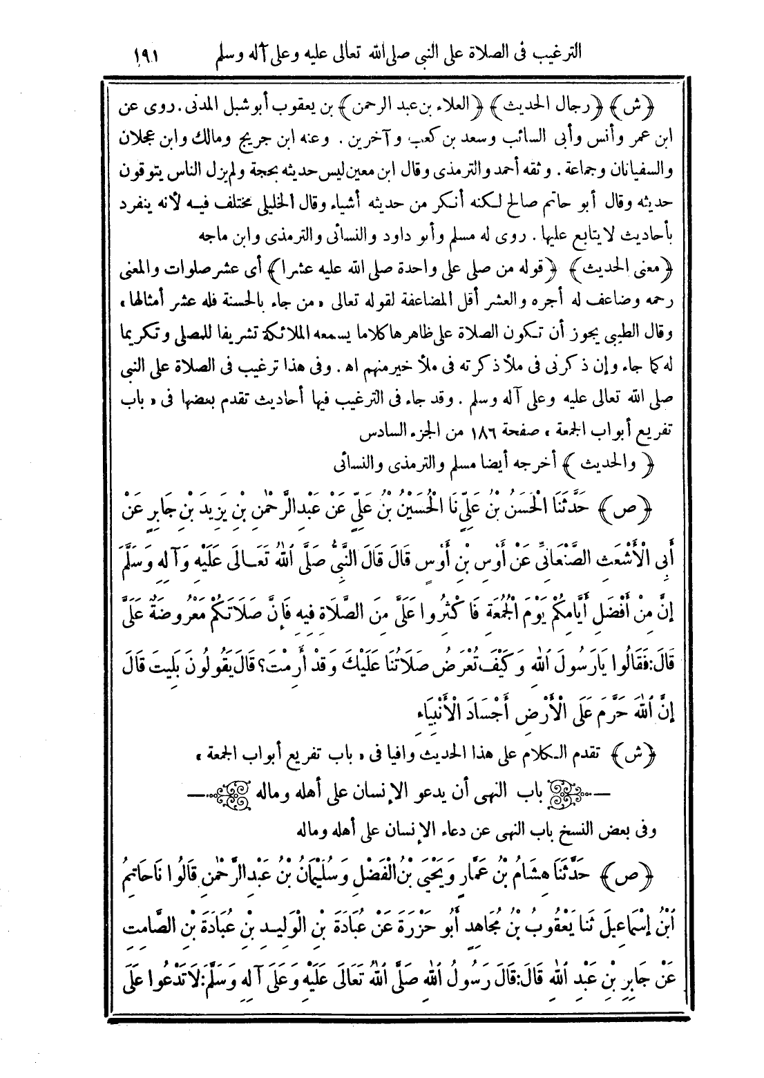 (ش) (رجال الحديث) (العلاء بن عبد الرحمن) بن يعقوب أبو شبل المدني روى عن ابن عمر وأنس وأبي السائب وسعد بن كعب وآخرين. وعنه ابن جريج ومالك وابن عجلان والسفيانان وجماعة وثقه أحمد الترمذي وقال ابن معين ليس حديثه بحجه ولم يزل الناس يتوقون حديثه وقال أبو حاتم صالح لكنه أنكر من حديثه أشياء وقال الخليلي مختلف فيه لأنه ينفرد بأحاديث لا يتابع عليها. روى له مسلم وأبو داود والنسائي والترمذي وابن ماجه