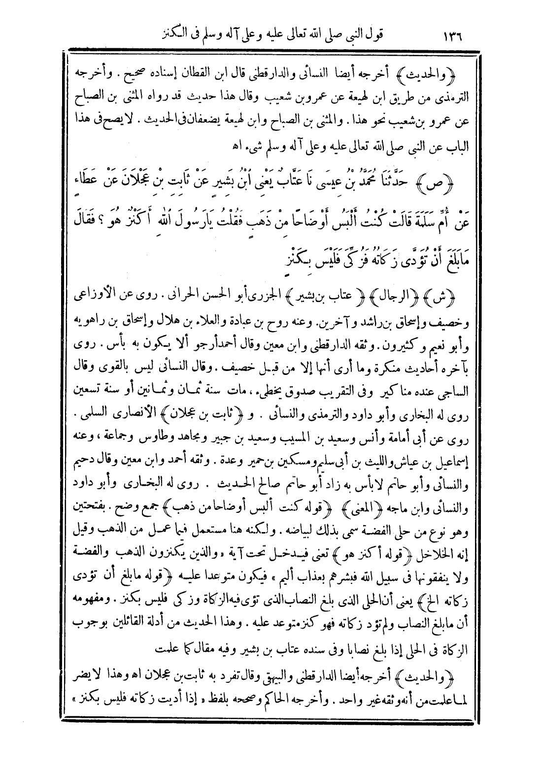 (والحديث) أخرجه أيضًا الدارقطني والبيهقي وقال تفرد به ثابت بن عجلان اهـ وهذا لا يضر لما علمت من أنه وثقه غير واحد. وأخرجه الحاكم وصححه بلفظ إذا أديت زكاته فليس بكنز"