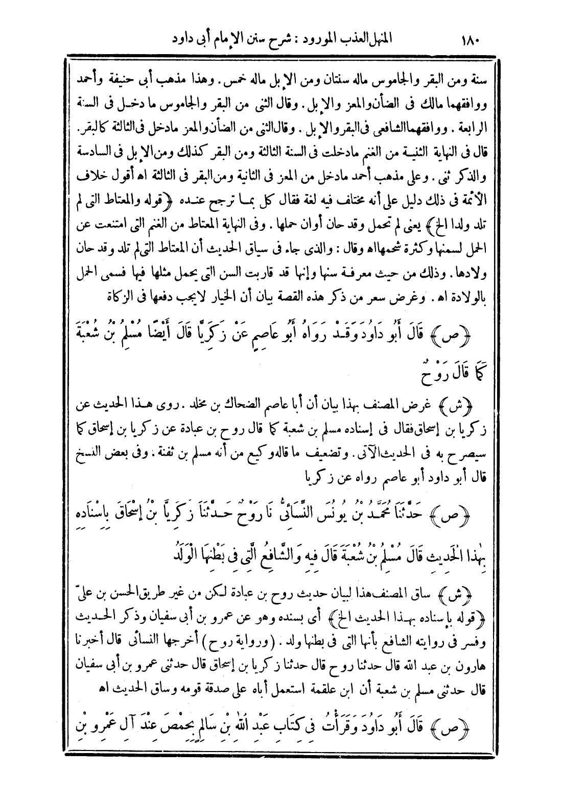 (ش) غرض المصنف بهذا بيان أن أبا عاصم الضحاك بن مخلد. روى هذا الحديث عن زكريا بن إسحاق في إسناده مسلم بن شعبة كما قال روح بن عبادة عن زكريا بن إسحاق كما سيصرح به في الحديث الآتي. وتضعيف ما قاله وكيع من أنه مسلم بن ثفنة. وفي بعض النسخ قال أبو داود أبو عاصم رواه عن زكريا