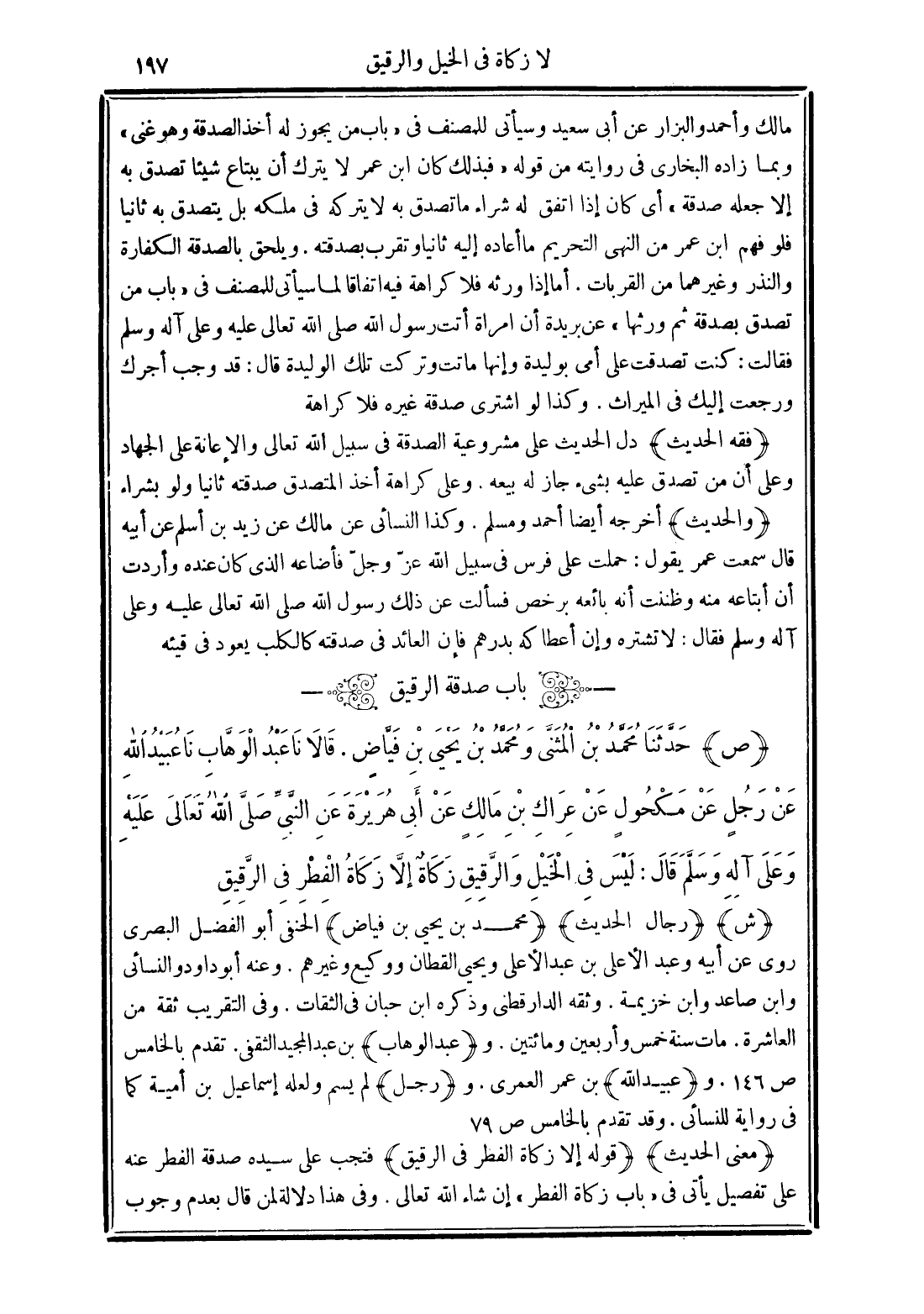 (ص) حَدَّثَنَا مُحَمَّدُ بْنُ الْمُثَنَّى وَمُحَمَّدُ بْنُ يَحْيَى بْنِ فَيَّاضٍ قَالاَ نَا عَبْدُ الْوَهَّابِ نَا عُبَيْدُ اللَّهِ عَنْ رَجُلٍ عَنْ مَكْحُولٍ عَنْ عِرَاكِ بْنِ مَالِكٍ عَنْ أَبِي هُرَيْرَةَ عَنِ النَّبِيِّ -صَلَّى الله تَعَالَى عَلَيْهِ وَعَلَى آلِهِ وَسَلَّمَ- قَالَ "لَيْسَ فِي الْخَيْلِ وَالرَّقِيقِ زَكَاةٌ إِلاَّ زَكَاةُ الْفِطْرِ فِي الرَّقِيقِ".