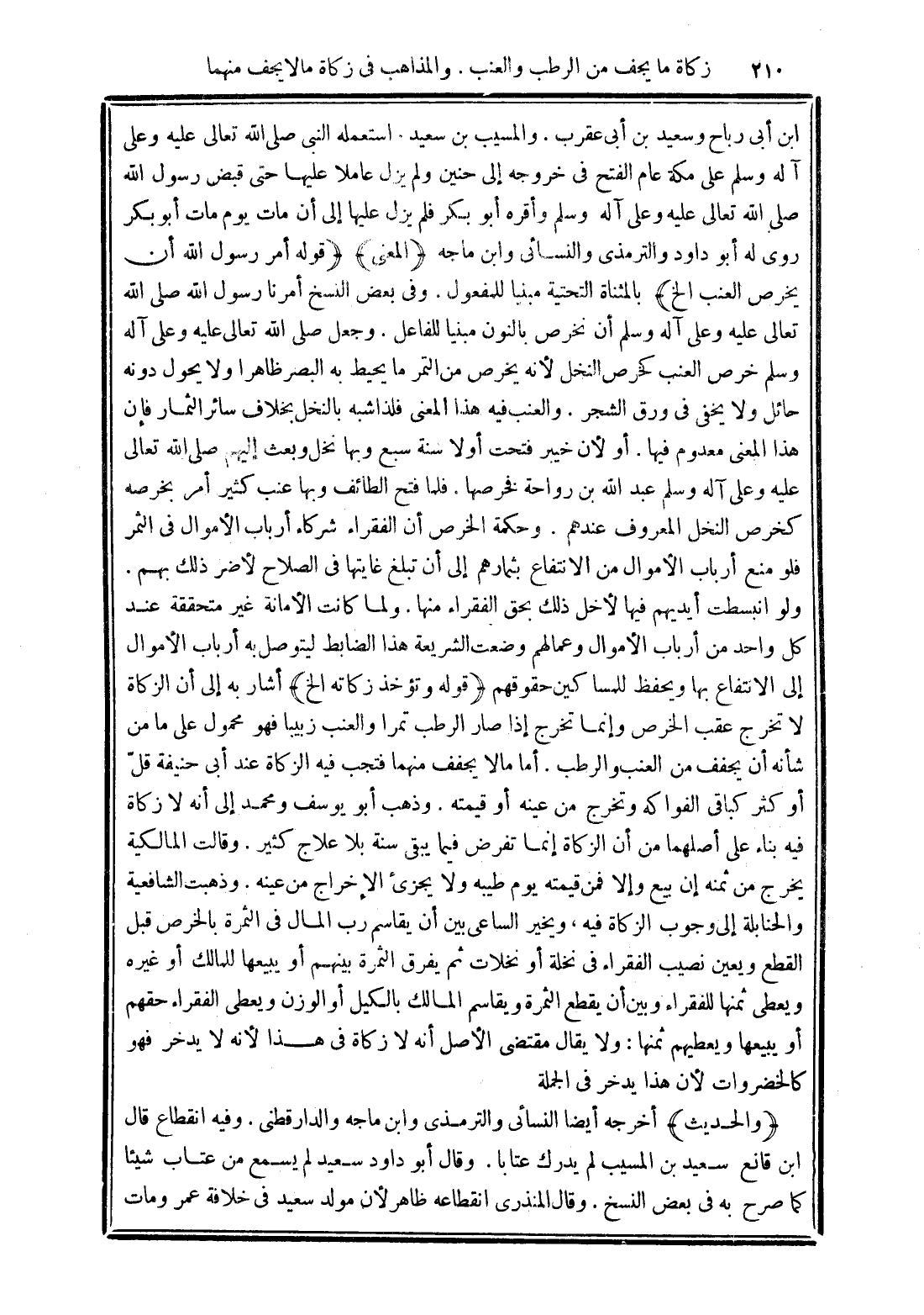 (والحديث) أخرجه أيضًا النسائي والترمذي وابن ماجه والدارقطني. وفيه انقطاع قال ابن قانع سعيد بن المسيب لم يدرك عتابًا. وقَالَ أَبُو دَاوُدَ سَعِيدٌ لَمْ يَسْمَعْ مِنْ عَتَّابٍ شَيْئًا. كما صرح به في بعض النسخ. وقال المنذري انقطاعه ظاهر لأن مولد سعيد في خلافة عمر ومات