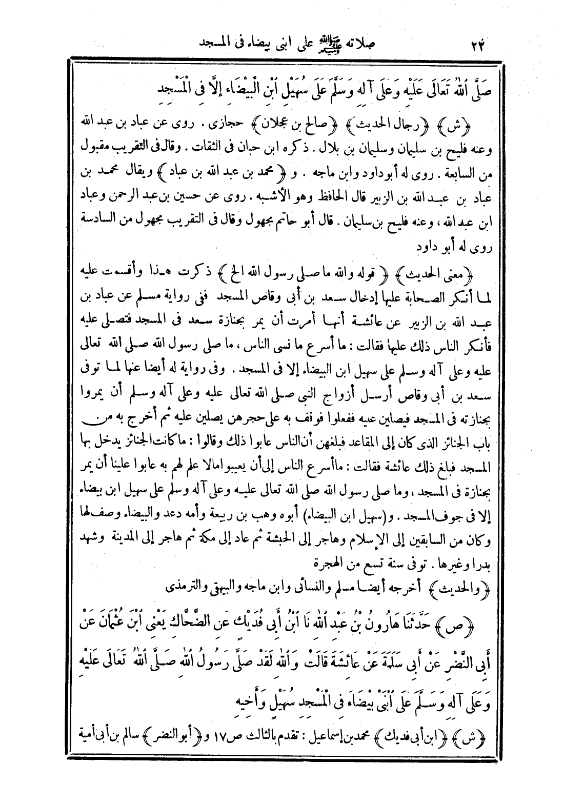 (ص) حَدَّثَنَا هَارُونُ بْنُ عَبْدِ اللَّهِ نَا ابْنُ أَبِي فُدَيْكٍ عَنِ الضَّحَّاكِ -يَعْنِي ابْنَ عُثْمَانَ- عَنْ أَبِي النَّضْرِ عَنْ أَبِي سَلَمَةَ عَنْ عَائِشَةَ قَالَتْ وَاللَّهِ لَقَدْ صَلَّى رَسُولُ اللَّهِ -صَلَّى الله تَعَالَى عَلَيْهِ وَعَلَى آلِهِ وَسَلَّمَ- عَلَى ابْنَيْ بَيْضَاءَ فِي الْمَسْجِدِ سُهَيْلٍ وَأَخِيهِ.