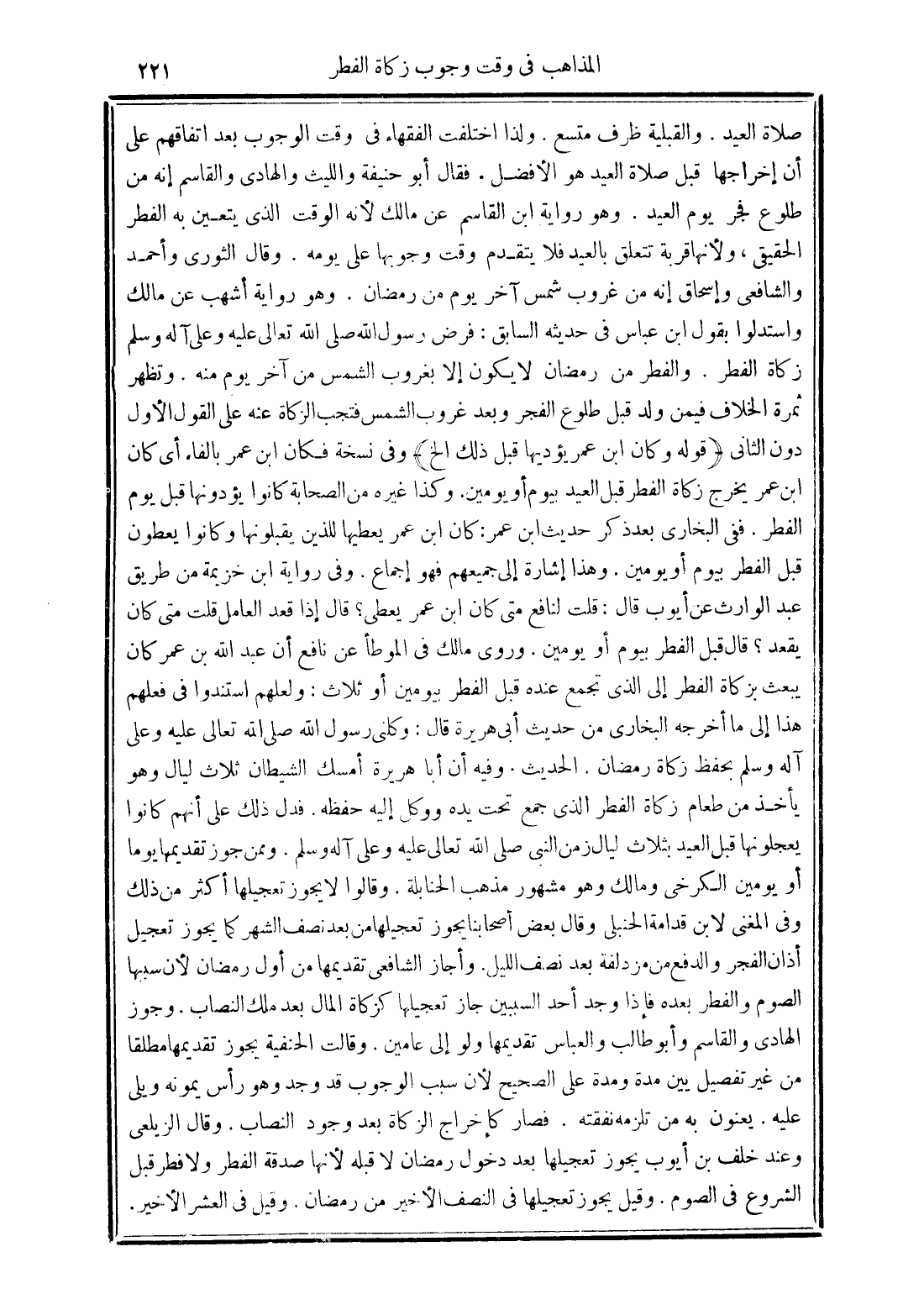 أن إخراجها قبل صلاة العيد هو الأفضل. فقال أبو حنيفة والليث والهادي والقاسم إنه من