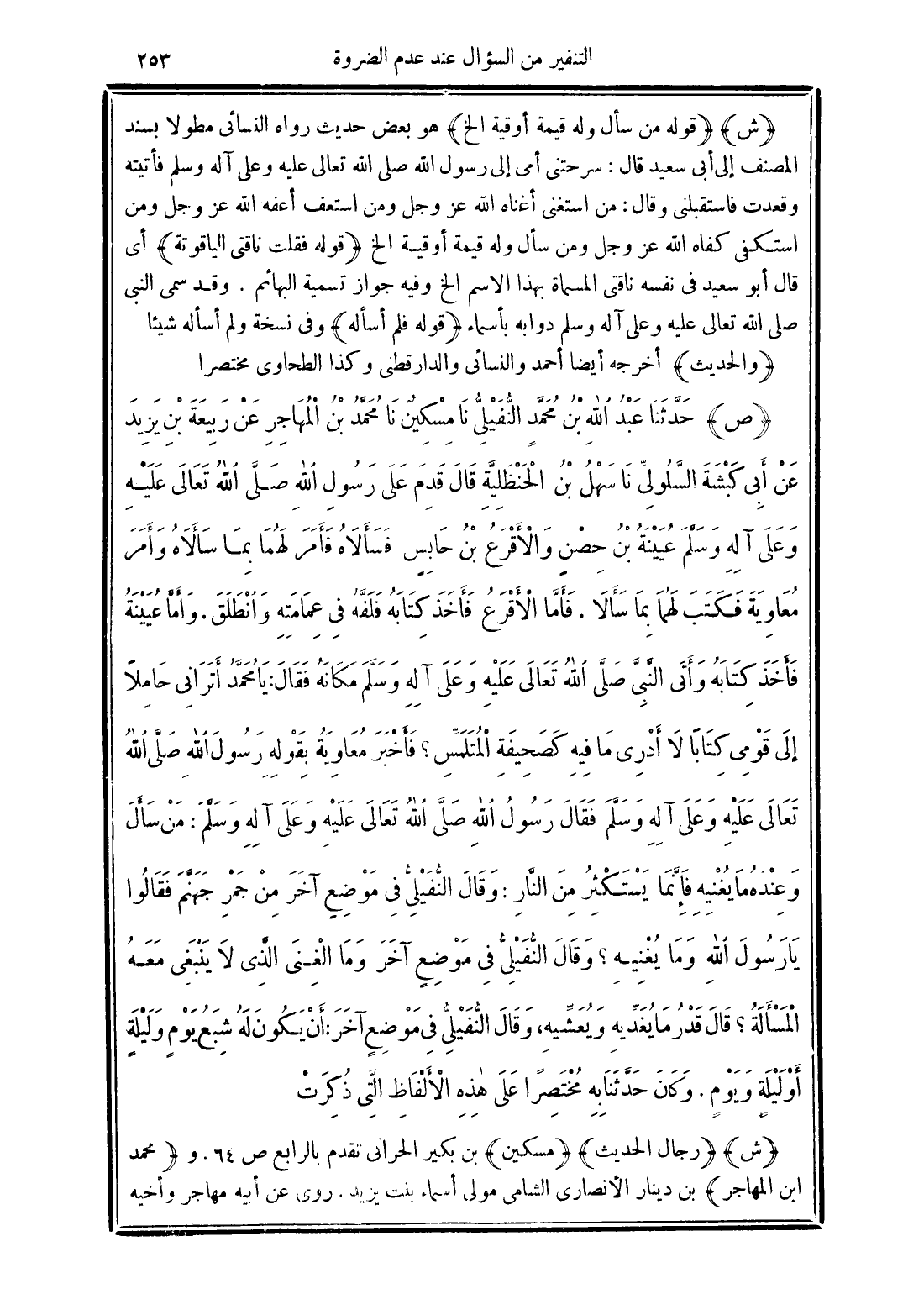 (ش) (قوله من سأل وله قيمة أوقية الخ) هو بعض حديث رواه النسائي مطولًا بسند المصنف إلى أبي سعيد قال: سرحتني أمي إلى رسول الله صلى الله تعالى عليه وعلى آله وسلم فأتيتة وقعدت فاستقبلني وقال: من استغنى أغناه الله عَزَّ وَجَلَّ ومن استعف أعفه الله عَزَّ وَجَلَّ ومن استكفى كفاه الله عَزَّ وَجَلَّ ومن سأل وله قيمة أوقية الخ