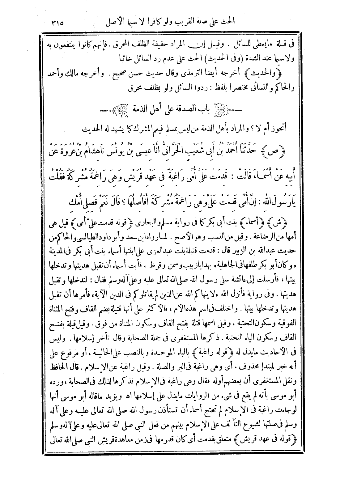 ويؤيد ما قاله أبو موسى أنها لو جاءت راغبة في الإسلام لم تحتج أسماء أن تستأذن رسول الله صلى الله تعالى عليه وعلى آله وسلم في صلتها لشيوع التآلف على الإسلام بينهم من فعل النبي صلى الله تعالى عليه وعلى آله وسلم
