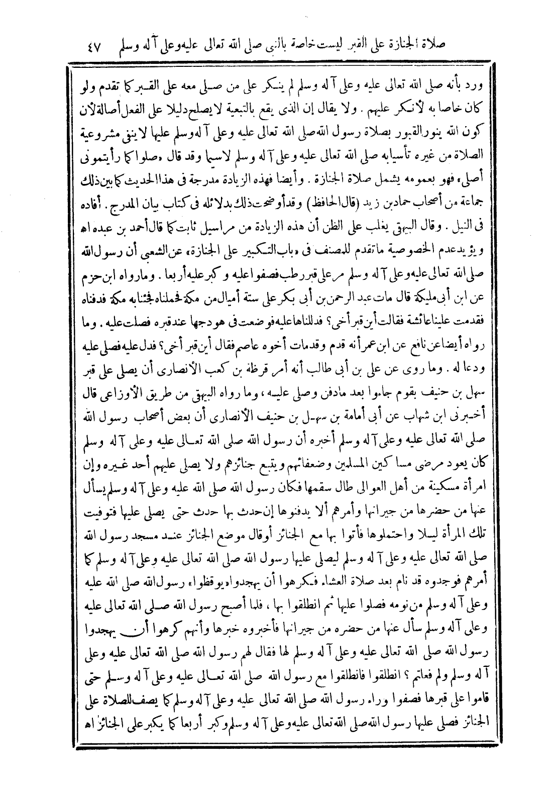 ورد بأنّه صلى الله تعالى عليه وعلى آله وسلم لم ينكر على من صلى معه على القبر كما تقدم ولو كان خاصًا به لأنكر عليهم. ولا يقال إن الذي يقع بالتبعية لا يصلح دليلًا على الفعل أصالة لأن كون الله ينور القبور بصلاة رسول الله صلى الله تعالى عليه وعلى آله وسلم عليها لا ينفي مشروعية الصلاة من غيره تأسيًا به صلى الله تعالى عليه وعلى آله وسلم لا سيما وقد قال "صلوا كما رأيتموني أصلي" فهو بعمومه يشتمل صلاة الجنازة. وأيضًا فهذه الزيادة مدرجة في هذا الحديث كما بين ذلك جماعة من أصحاب حماد بن زيد