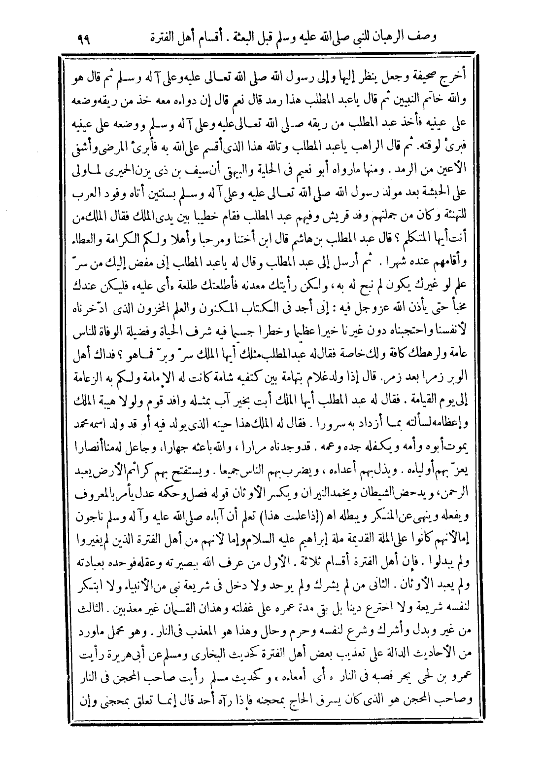 ثم قال الراهب يا عبد المطلب وتالله هذا الذي أقسم على الله به فأبرئ المرضى وأشفي الأعين من الرمد.