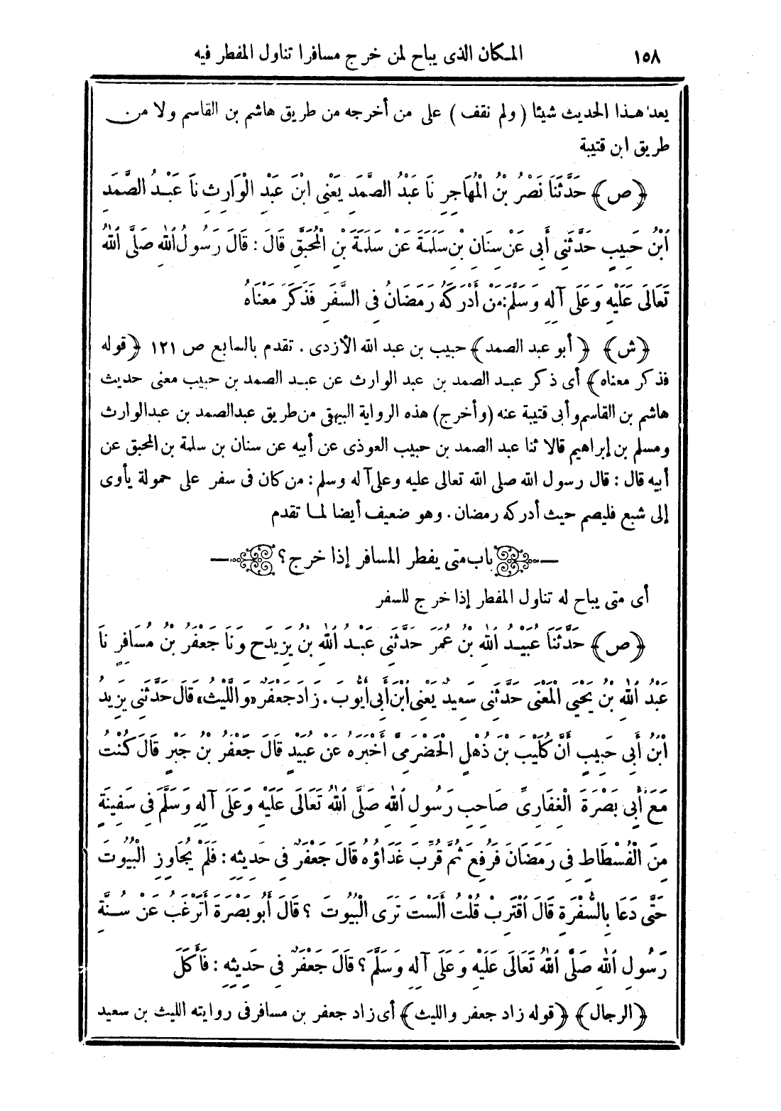 (قوله فذكر معناه) أي ذكر عبد الصمد بن عبد الوارث عن عبد الصمد بن حبيب معنى حديث هاشم بن القاسم وأبي قتيبة عنه (وأخرج) هذه الرواية البيهقى من طريق عبد الصمد بن عبد الوارث ومسلم بن إبراهيم قالا ثنا عبد الصمد بن حبيب العوذى عن أبيه عن سنان بن سلمة بن المحبق عن أبيه قال: قال رسول الله صلى الله تعالى عليه وعلى آله وسلم: من كان في سفر على حمولة يأوى إلى شبع فليصم حيث أدركه رمضان. وهو ضعيف أيضا لما تقدم.
