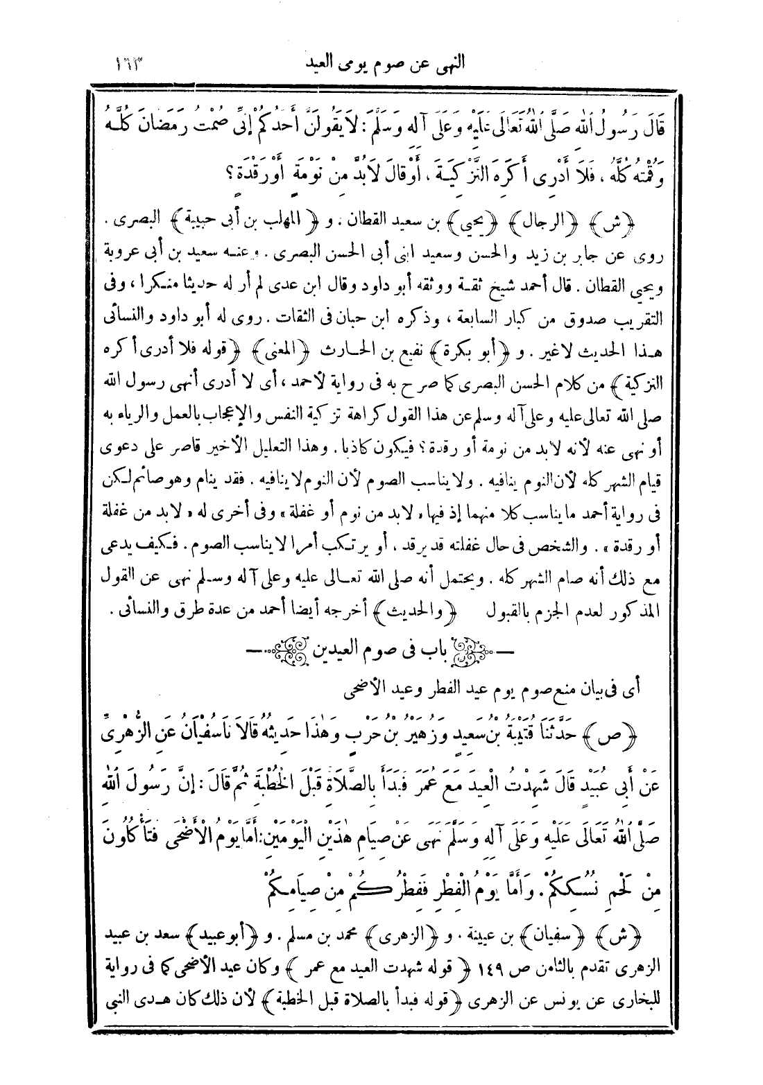 أى فى بيان منع صوم يوم عيد الفطر وعيد الأضحى