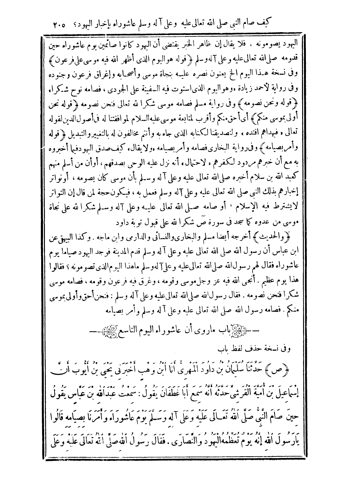 اليهود يصومونه, فلا يقال إن ظاهر الخبر يقتضى أن اليهود كانوا صائمين يوم عاشوراء حين قدومه صلى الله تعالى عليه وعلى آله وسلم