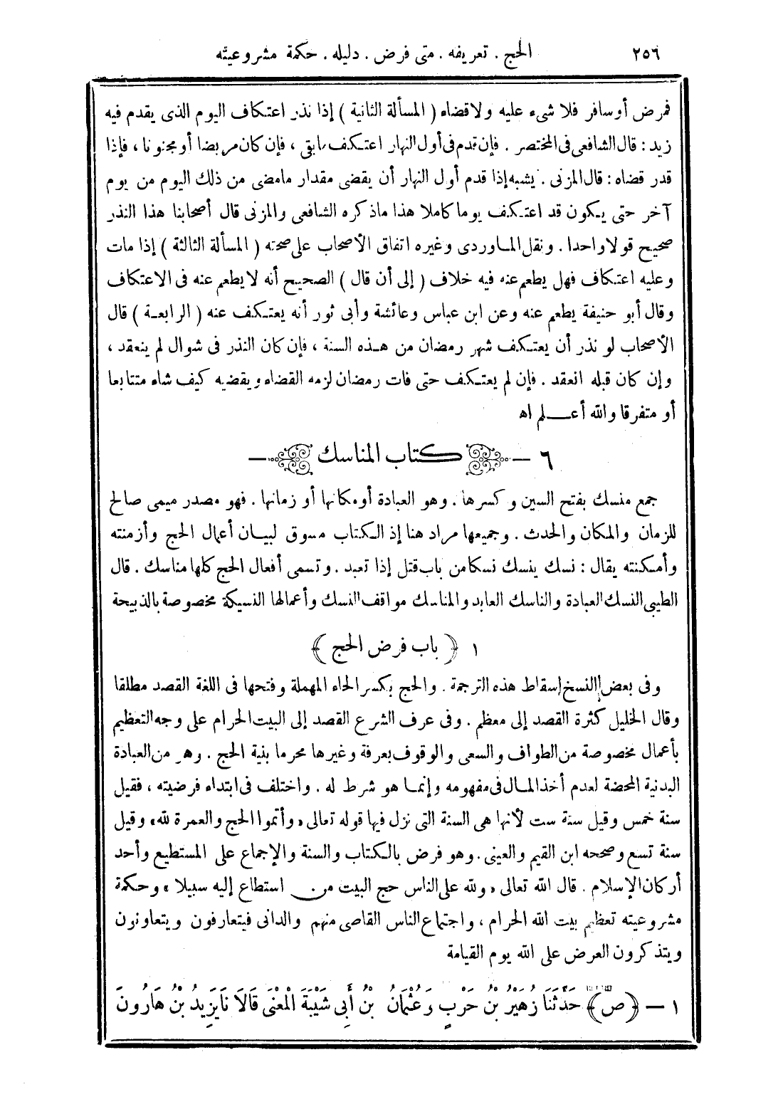 وفى بعض النسخ إسقاط هذه الترجمة. والحج بكسر الحاء المهملة وفتحها في اللغة القصد مطلقا وقال الخليل كثرة القصد إلى معظم. وفى عرف الشرع القصد إلي البيت الحرام على وجه التعظيم بأعمال مخصوصة من الطواف والسعي والوقوف بعرفة وغيرها محرما بنية الحج. وهو من العبادة البدنية المحضة لعدم أخذ المال في مفهومه وإنما هو شرط له. واختلف في ابتداء فرضيته فقيل سنة خمس وقيل سنة ستة لأنها هي السنة التي نزل فيها قوله تعالى {وَأَتِمُّوا الْحَجَّ وَالْعُمْرَةَ لِلَّهِ} وقيل أركان الإسلام. قال الله تعالى {وَلِلَّهِ عَلَى النَّاسِ حِجُّ الْبَيْتِ مَنِ اسْتَطَاعَ إِلَيْهِ سَبِيلًا} وحكمة مشروعيته تعظيم بيت الله الحرام, واجتماع الناس القاصى منهم والدانى فيتعارفون ويتعاونون ويتذكرون العرض على الله يوم القيامة