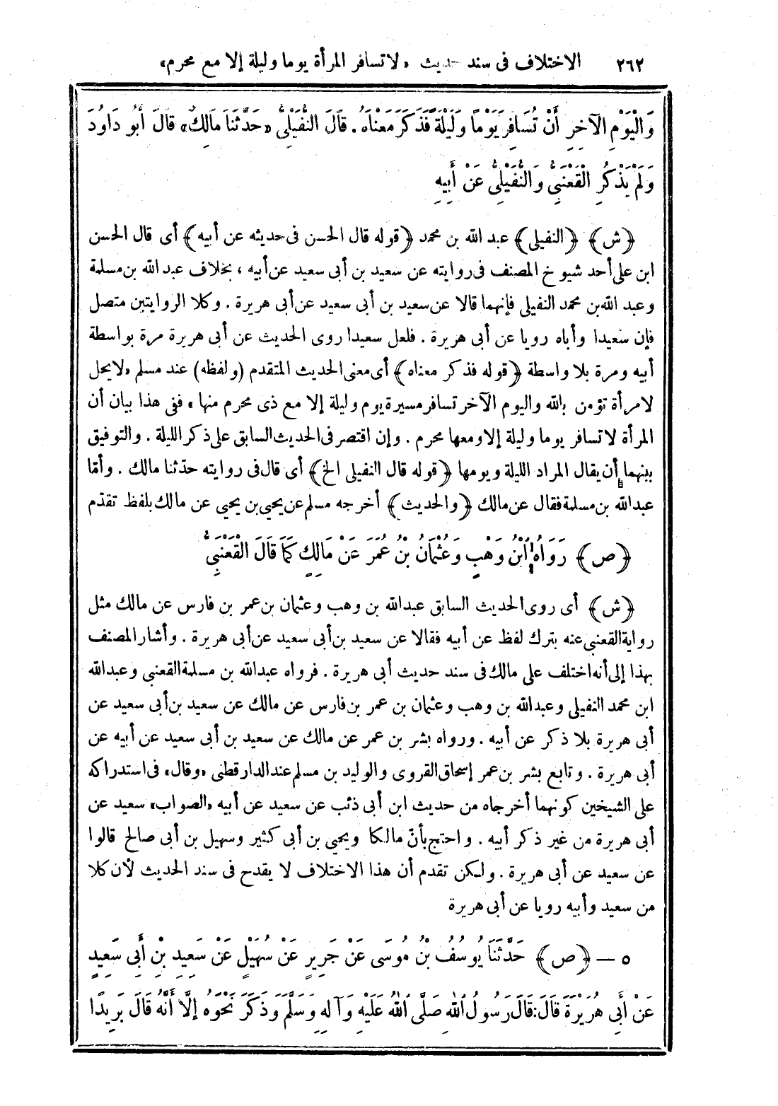 (ص) رَوَاهُ ابْنُ وَهْبٍ وَعُثْمَانُ بْنُ عُمَرَ عَنْ مَالِكٍ كَمَا قَالَ الْقَعْنَبِىُّ.