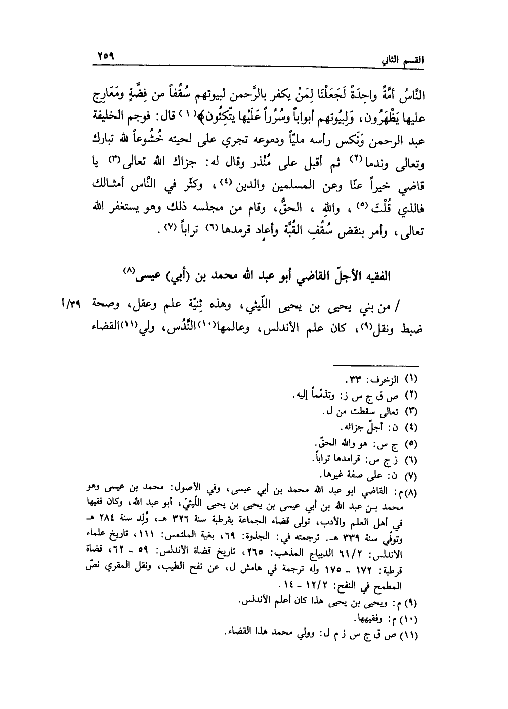 من بني يحيى بن يحيى اللّيثي، وهذه ثِنيّة علم وعقل، وصحة ضبط ونقل، كان علم الأندلس، وعالمها النَّدُس، ولي القضاء