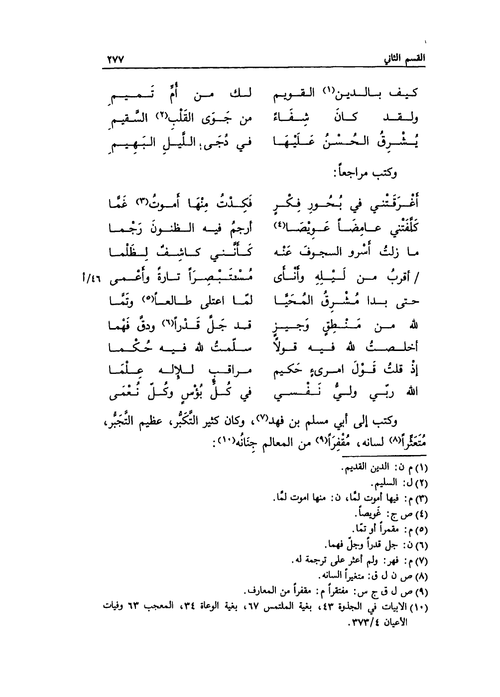 كيف بالدين القويم ... لك من أمِّ تَميمِ