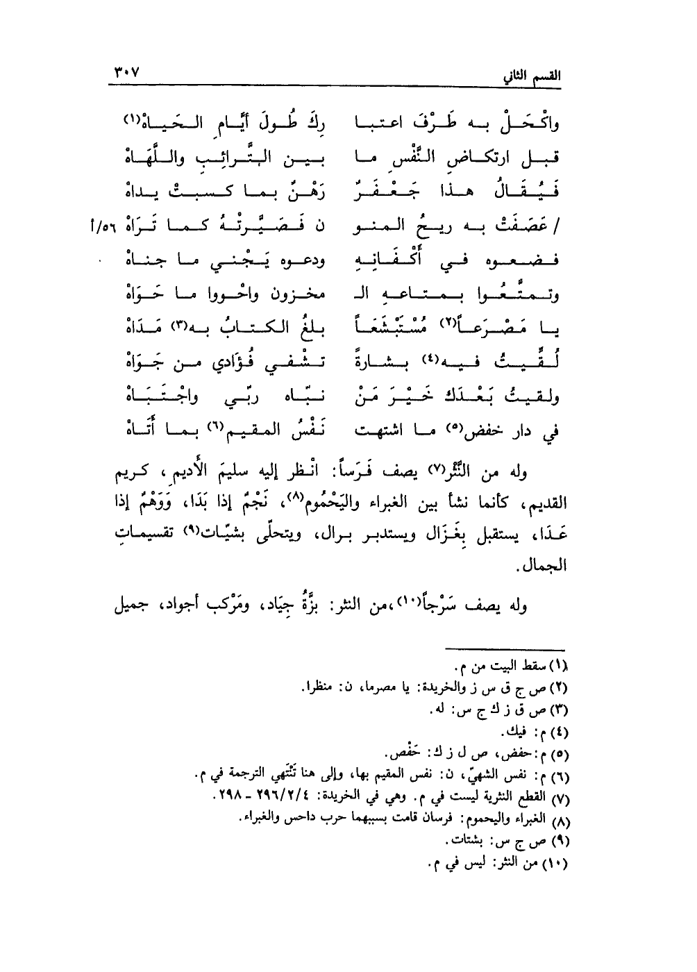 وله يصف سَرجاً، من النثر: بزَّةُ جِياد، ومَركب أجواد، جميل