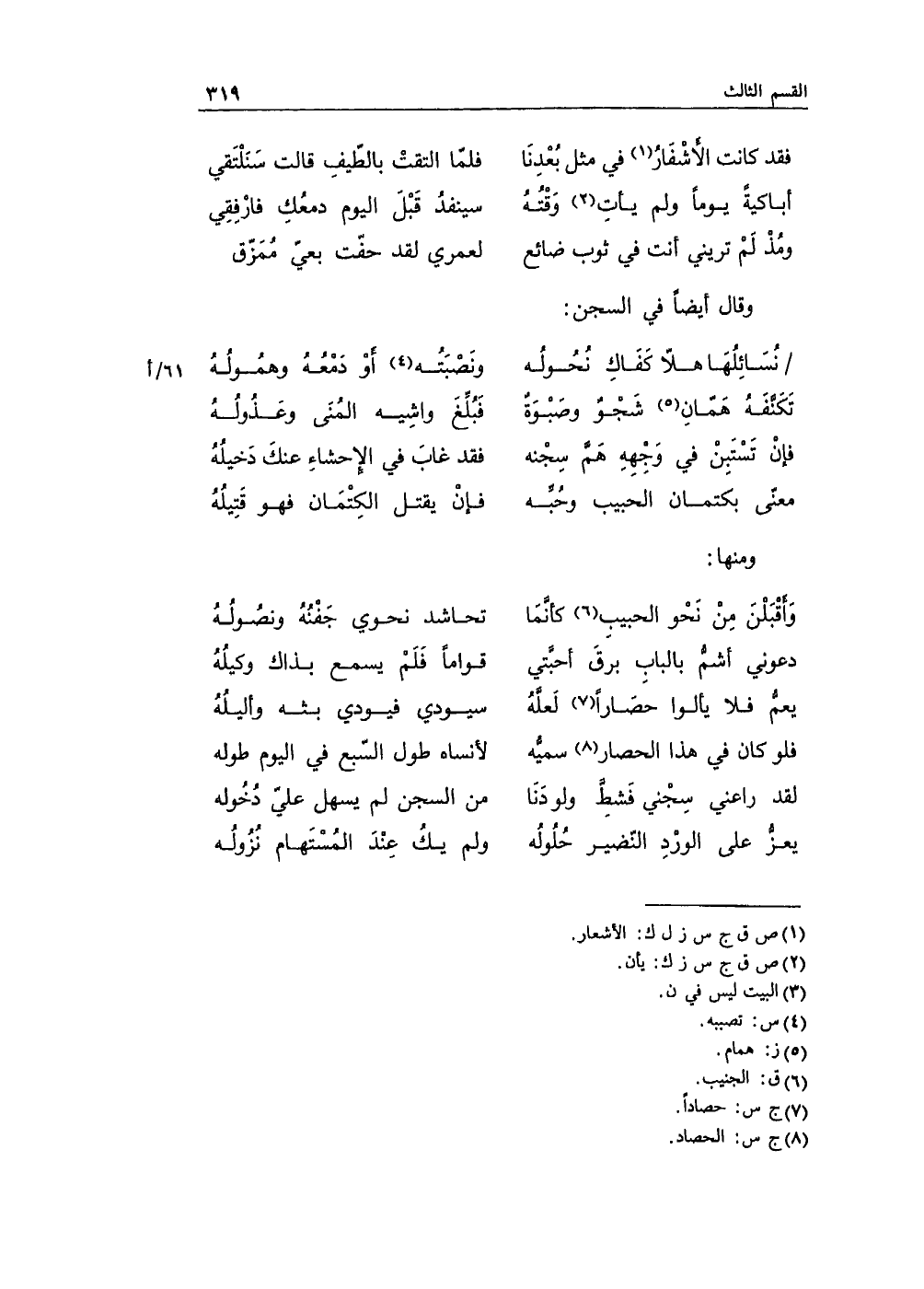 وَاقْبَلنَ مِنْ نَحْو الحبيبِ كأنَّمَا ... تحاشد نحويي جَفْنُهُ ونصُولُهُ