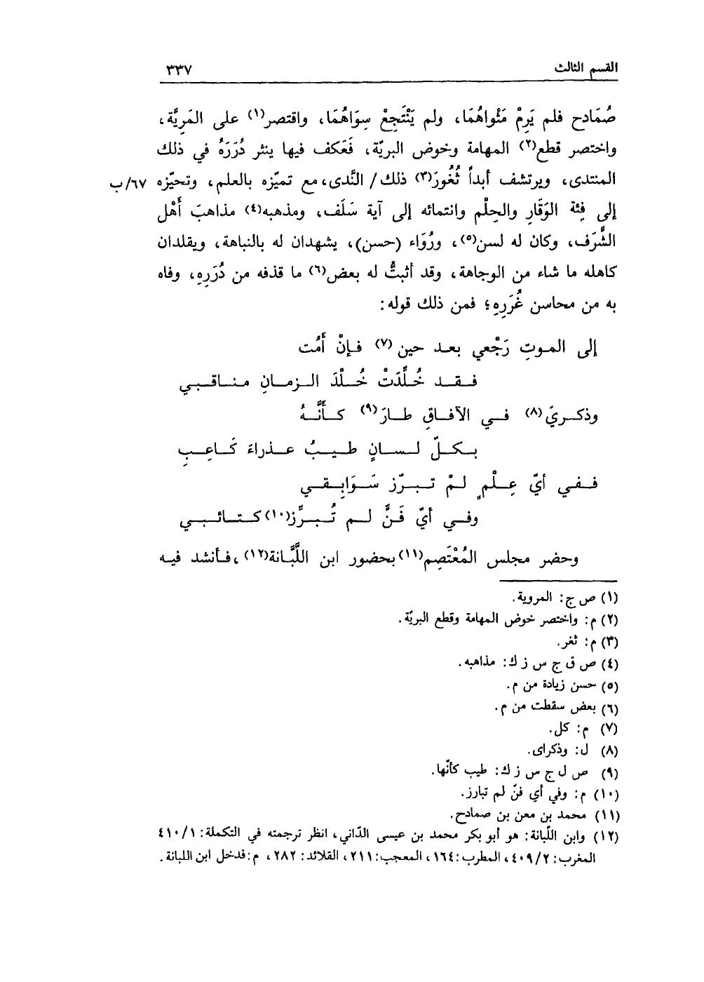 وحضر مجلس المُعتصِم بحضور ابن اللَّبَّانة، فأنشد فيه