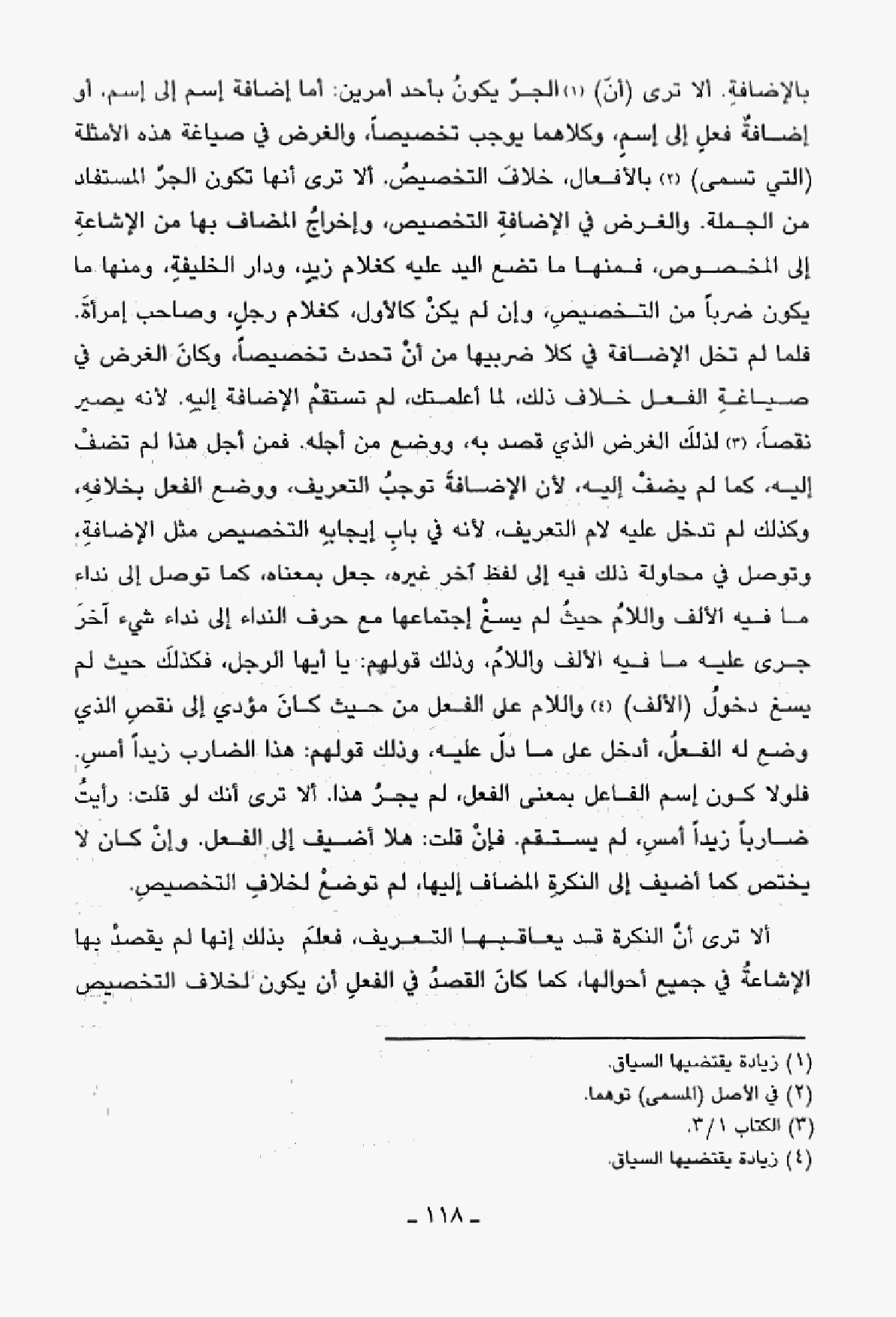 ألا ترى أنَّ النكرة قد يعاقبها التعريف، فعلم بذلك إنها لم يقصد بها الإشاعة في جميع أحوالها، كما كان القصد في الفعل أن يكون لخلاف التخصيص