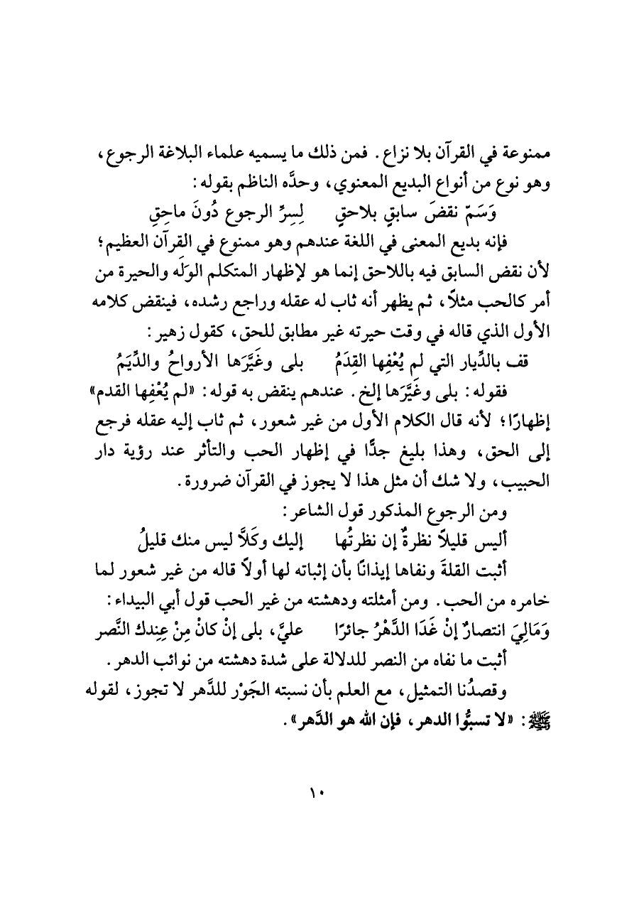ممنوعة في القرآن بلا نزاع. فمن ذلك ما يسميه علماء البلاغة الرجوع، وهو نوع من أنواع البديع المعنوي، وحدَّه الناظم بقوله: