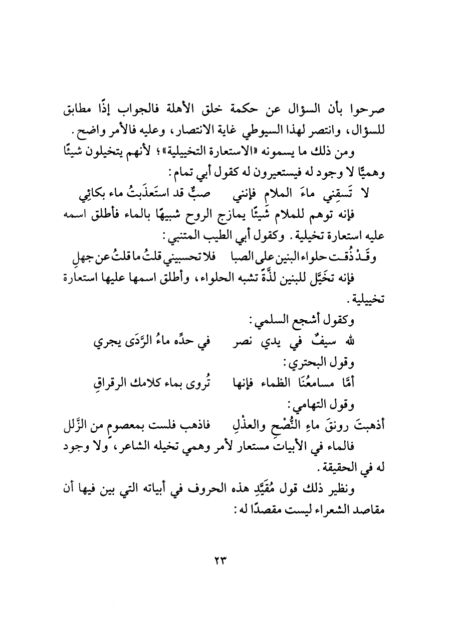 فالماء في الأبيات مستعار لأمر وهمي تخيله الشاعر، ولا وجود له في الحقيقة.