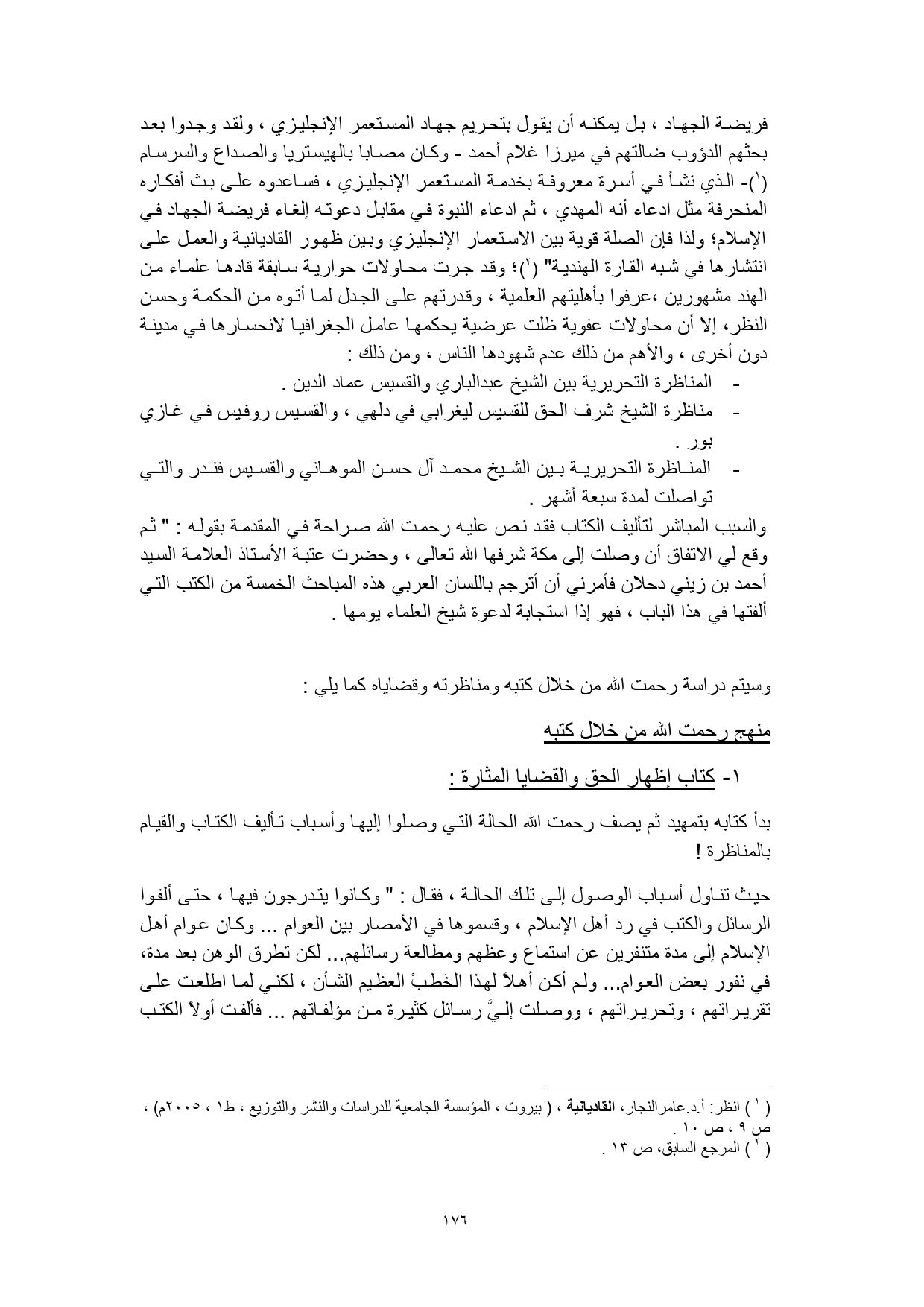 1 - كتاب إظهار الحق والقضايا المثارة: