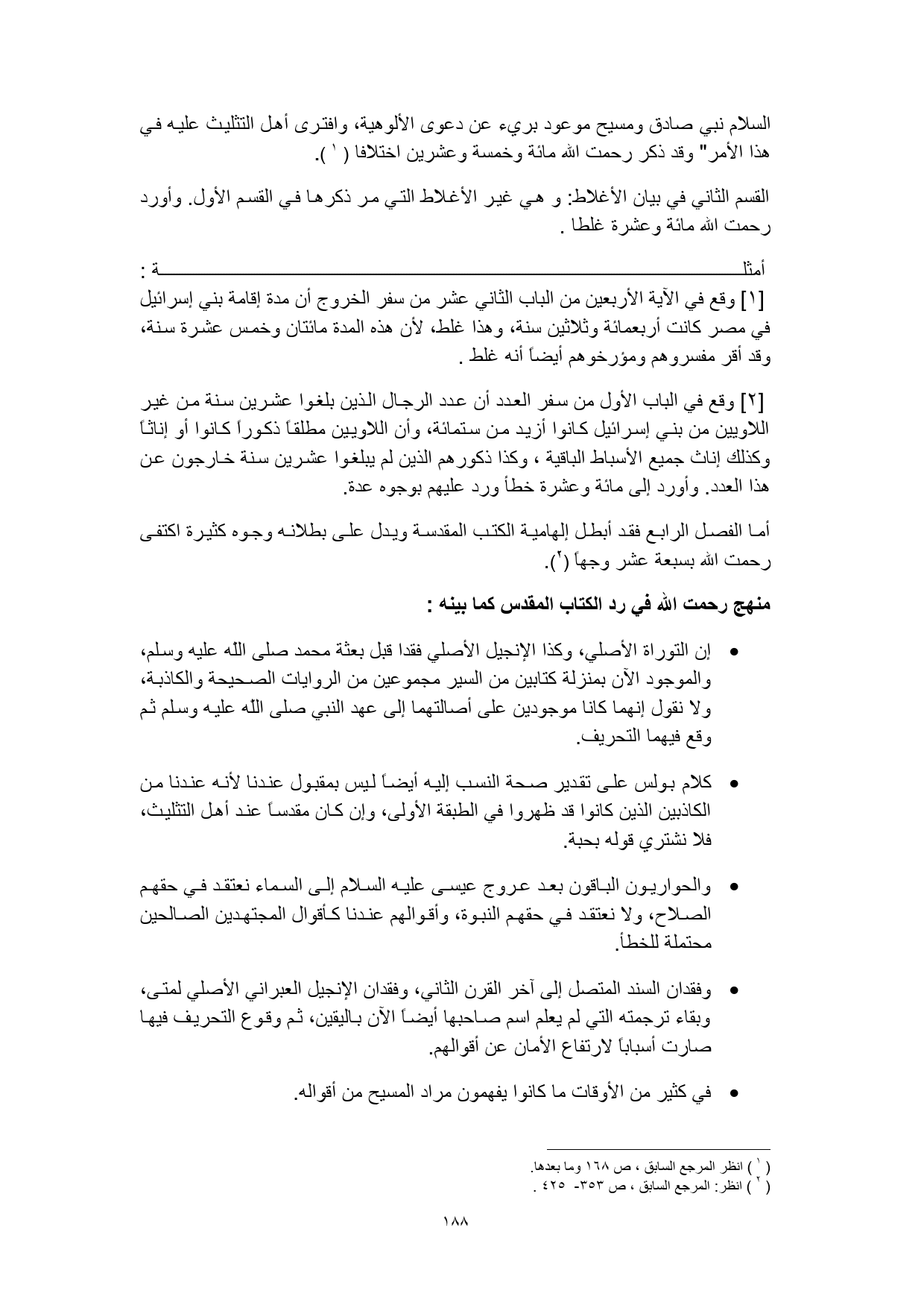 منهج رحمت الله في رد الكتاب المقدس كما بينه: