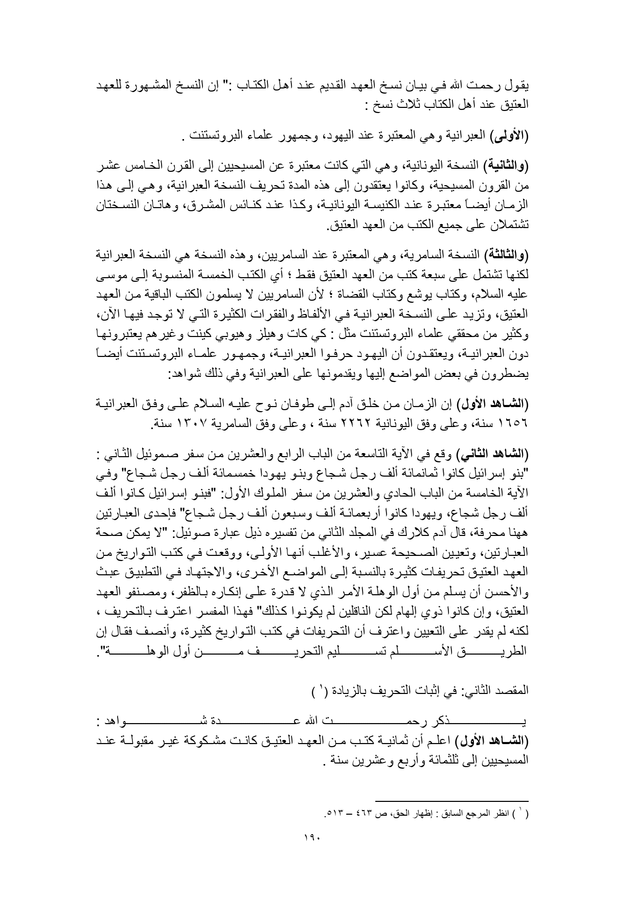 (¬1) انظر المرجع السابق: إظهار الحق، ص 463 - 513.