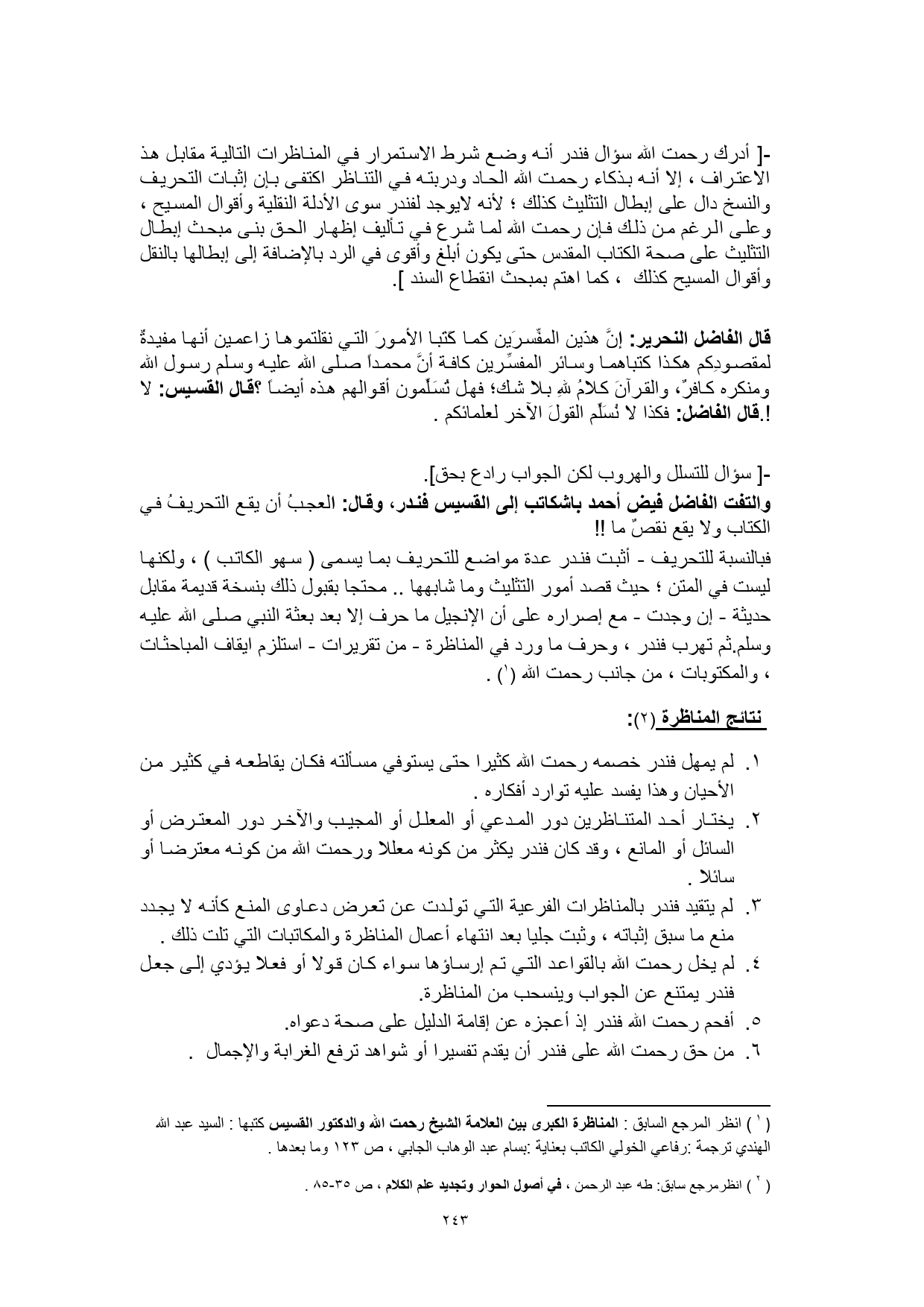 5. أفحم رحمت الله فندر إذ أعجزه عن إقامة الدليل على صحة دعواه.