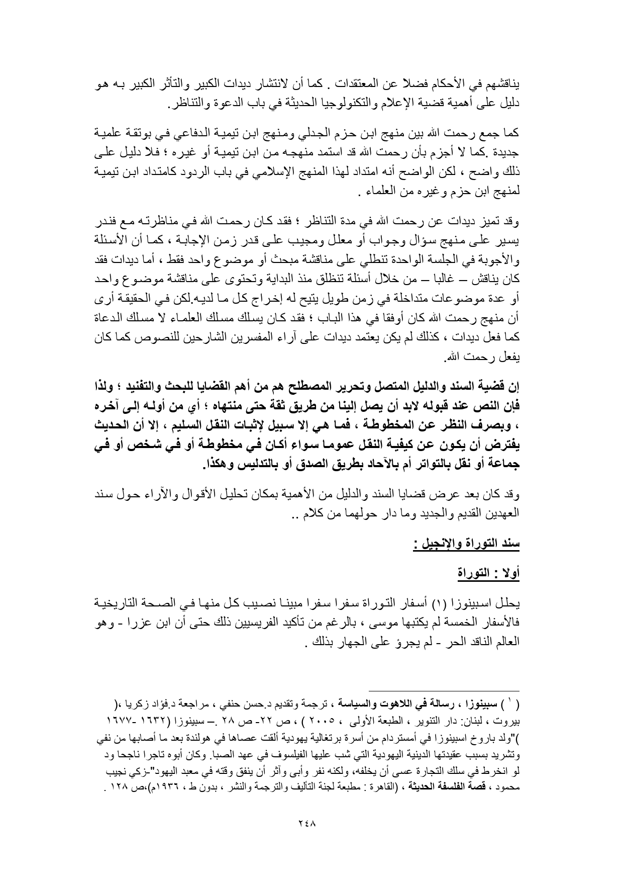 وقد كان بعد عرض قضايا السند والدليل من الأهمية بمكان تحليل الأقوال والآراء حول سند العهدين القديم والجديد وما دار حولهما من كلام ..