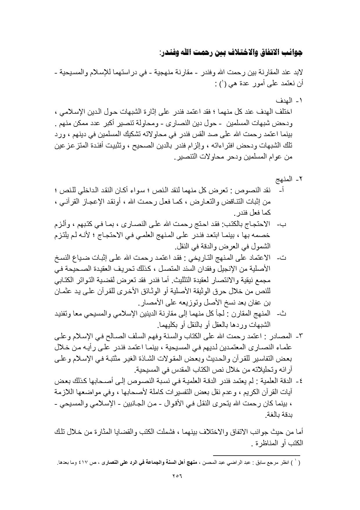 لابد عند المقارنة بين رحمت الله وفندر - مقارنة منهجية - في دراستهما للإسلام والمسيحية -أن نعتمد على أمور عدة هي (¬1):