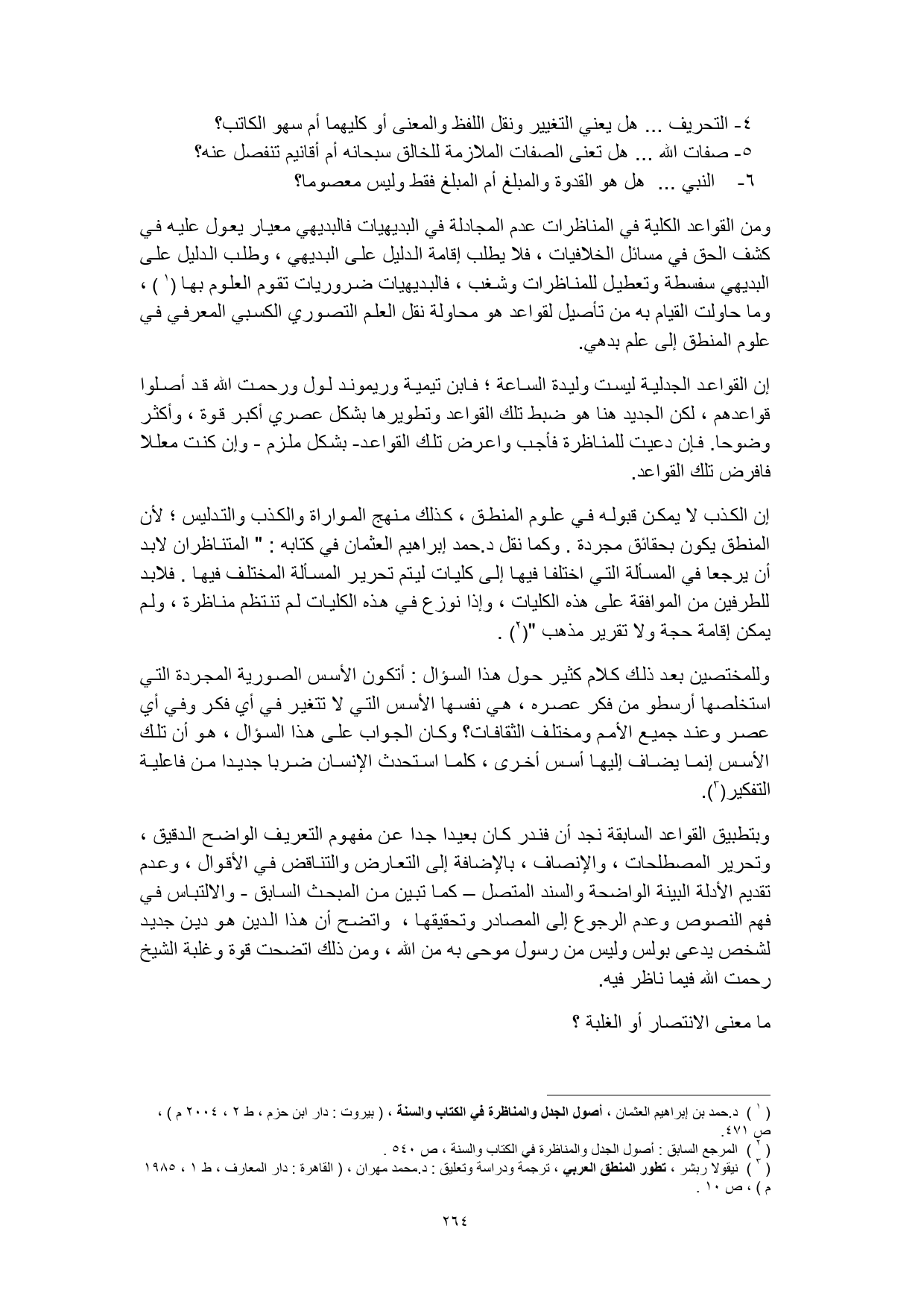 (¬1) د. حمد بن إبراهيم العثمان، أصول الجدل والمناظرة في الكتاب والسنة، (بيروت: دار ابن حزم، ط 2، 2004 م)، ص 471.
