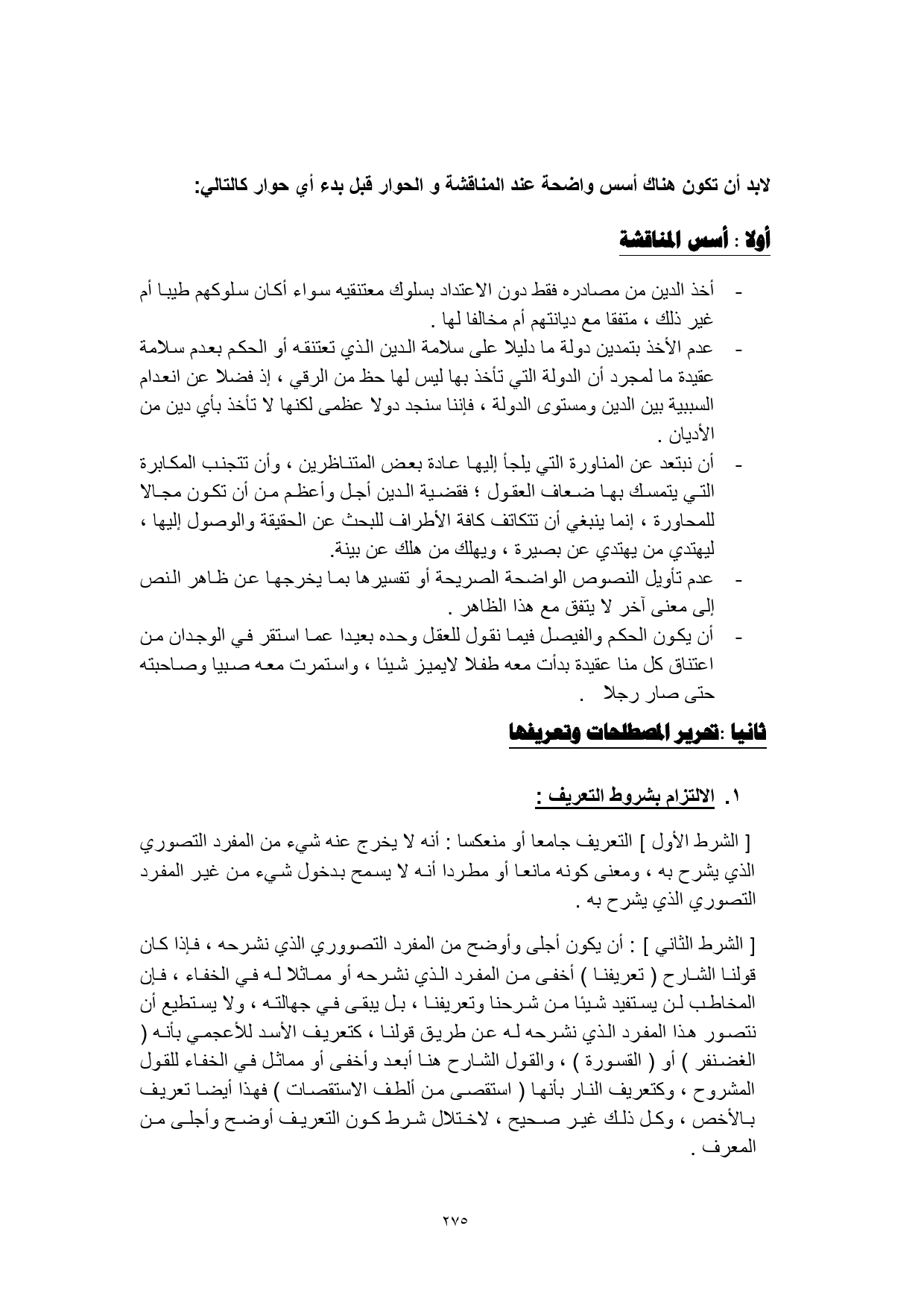 لابد أن تكون هناك أسس واضحة عند المناقشة والحوار قبل بدء أي حوار كالتالي: