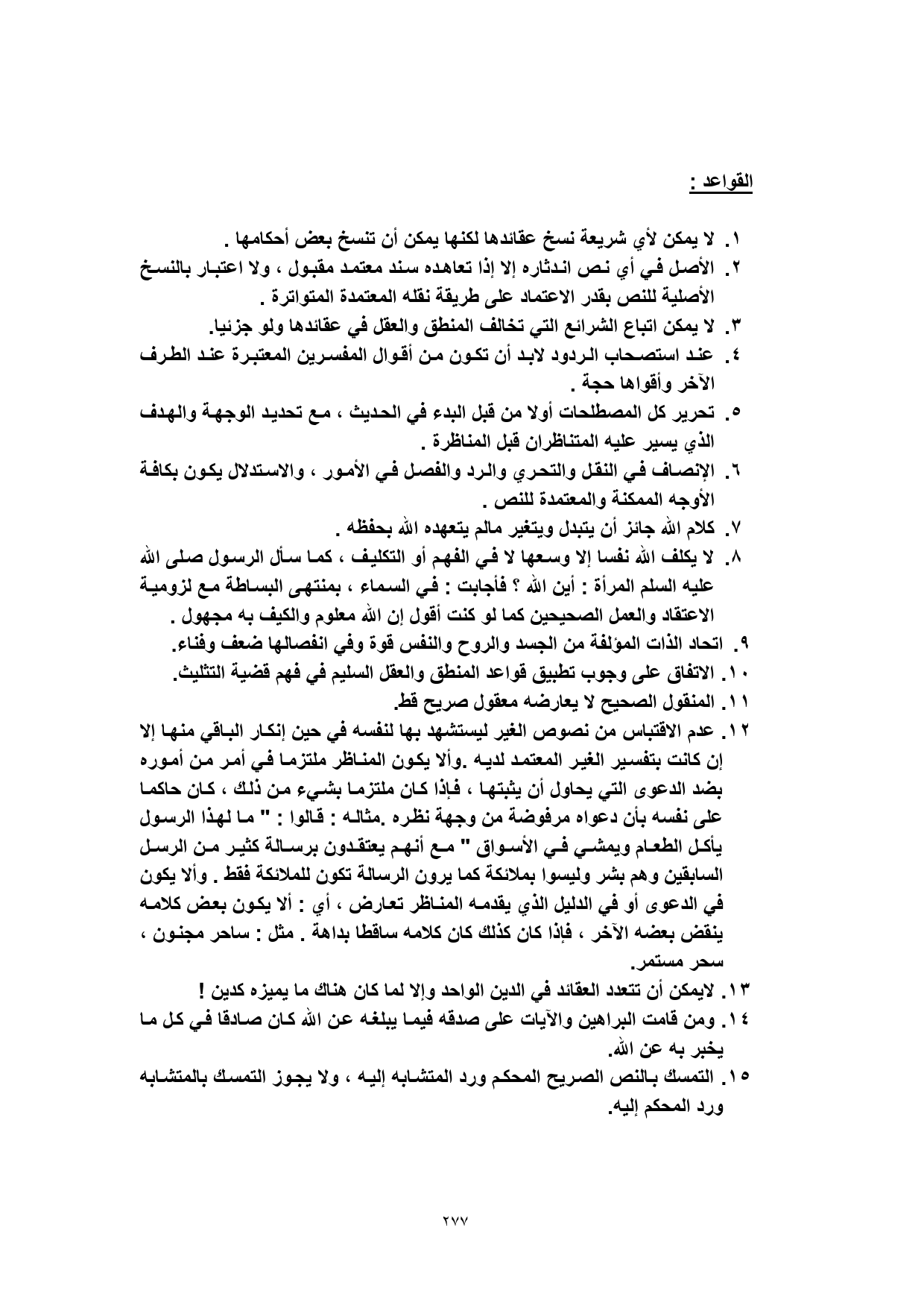 15. التمسك بالنص الصريح المحكم ورد المتشابه إليه، ولا يجوز التمسك بالمتشابه ورد المحكم إليه.