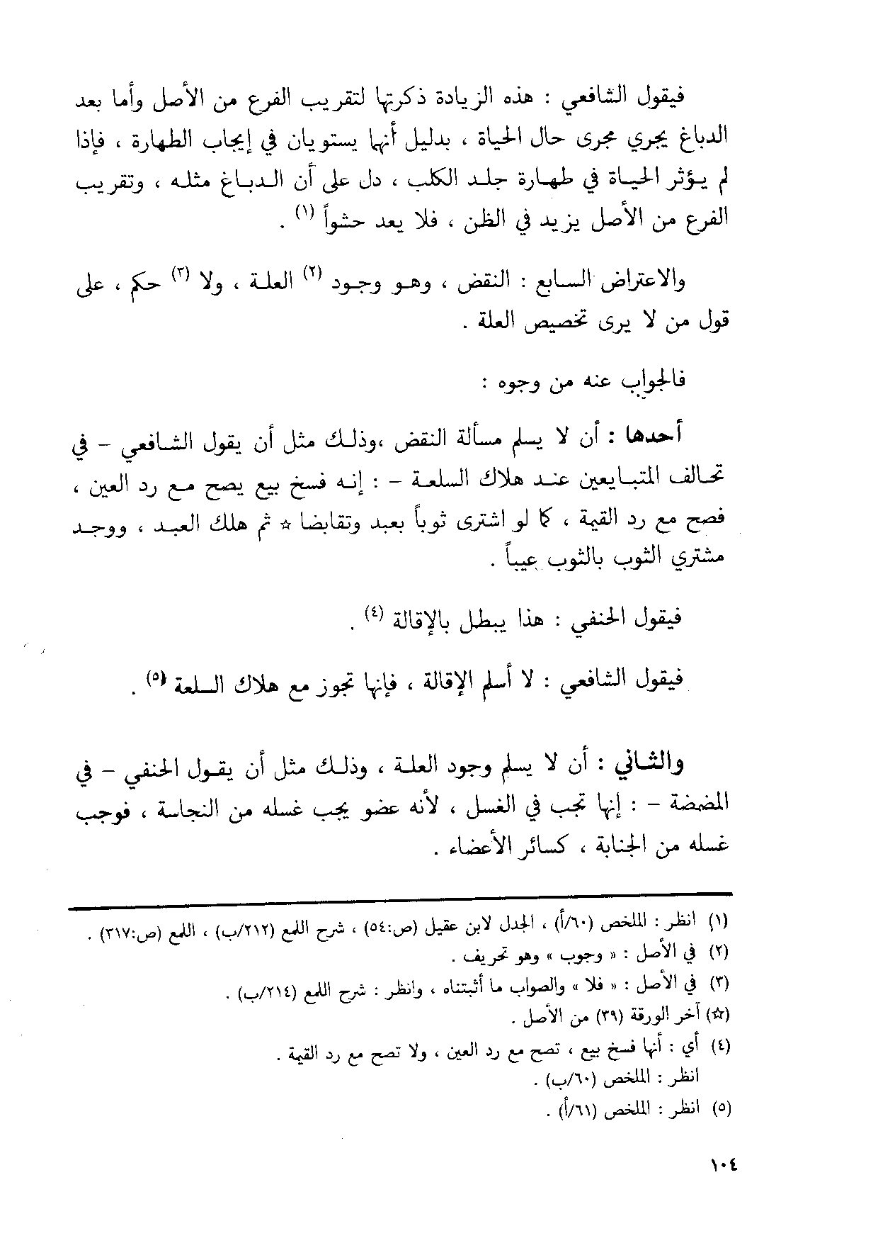 احدها ان لَا يسلم مَسْأَلَة النَّقْض وَذَلِكَ مثل ان يَقُول الشَّافِعِي فِي تحالف الْمُتَبَايعين عِنْد هَلَاك السّلْعَة انه فسخ بيع يَصح مَعَ رد الْعين فصح مَعَ رد الْقيمَة كَمَا لَو اشْترى ثوبا بِعَبْد وَتقَابَضَا ثمَّ هلك العَبْد وَوجد مُشْتَرِي الثَّوْب بِالثَّوْبِ عَيْبا