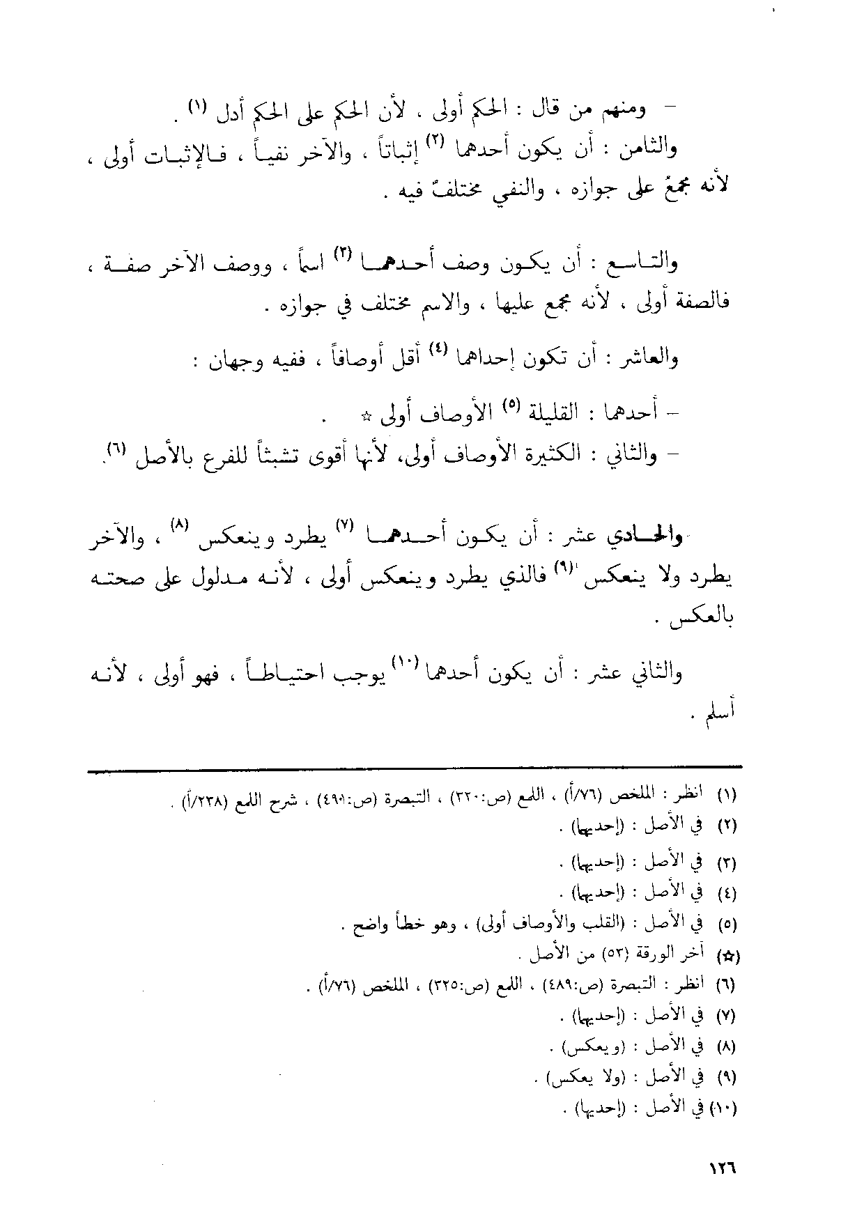 وَالْحَادِي عشر ان يكون احدهما يطرد وينعكس والاخر يطرد وَلَا ينعكس فَالَّذِي يطرد وينعكس اولى لانه مَدْلُول على صِحَّته بِالْعَكْسِ