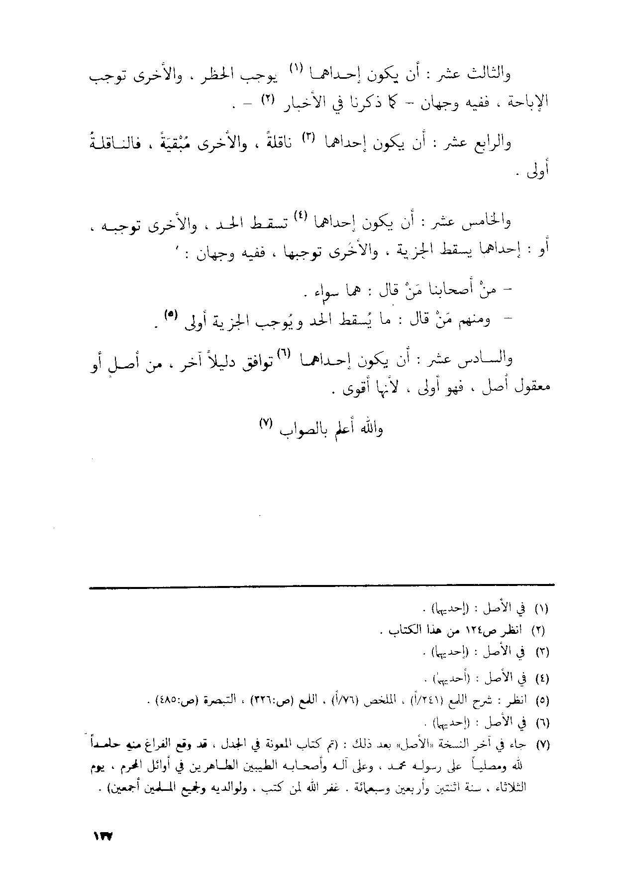 وَالْخَامِس عشر ان يكون احداهما تسْقط الْحَد والاخرى توجبه اَوْ احداهما يسْقط الْجِزْيَة والاخرى توجبها فَفِيهِ وَجْهَان