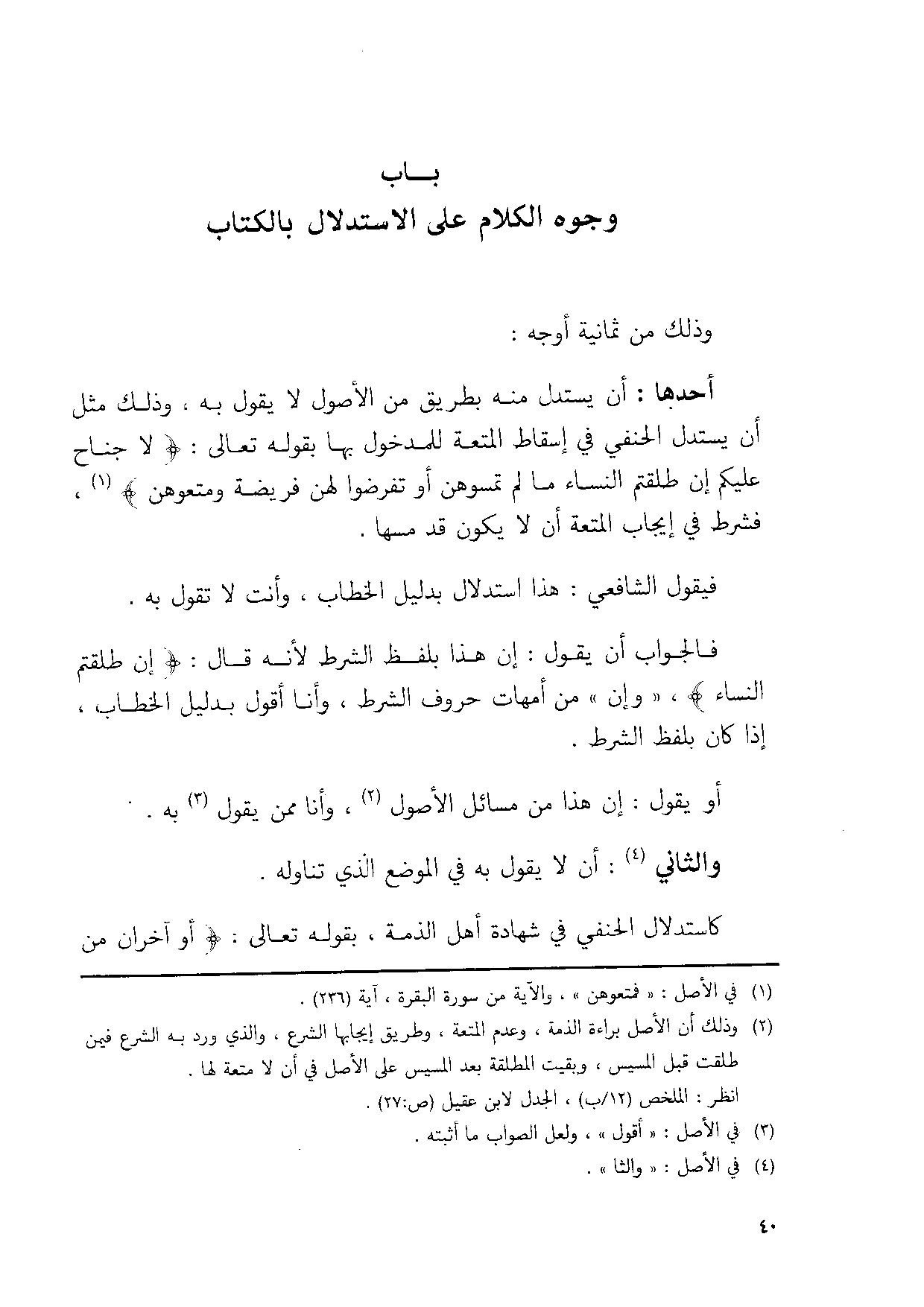 - صَلَّى اللَّهُ عَلَيْهِ وَسَلَّم َ - بَاب وُجُوه الْكَلَام على الِاسْتِدْلَال بِالْكتاب - صَلَّى اللَّهُ عَلَيْهِ وَسَلَّم َ -