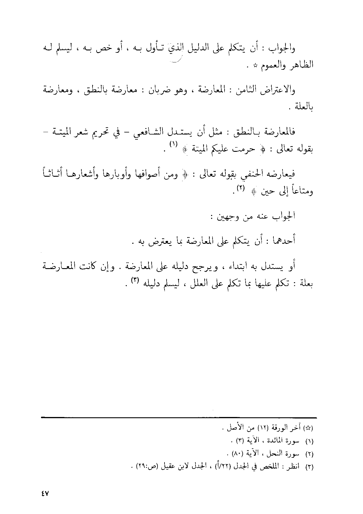 احدهما ان يتَكَلَّم على الْمُعَارضَة بِمَا يعْتَرض بِهِ