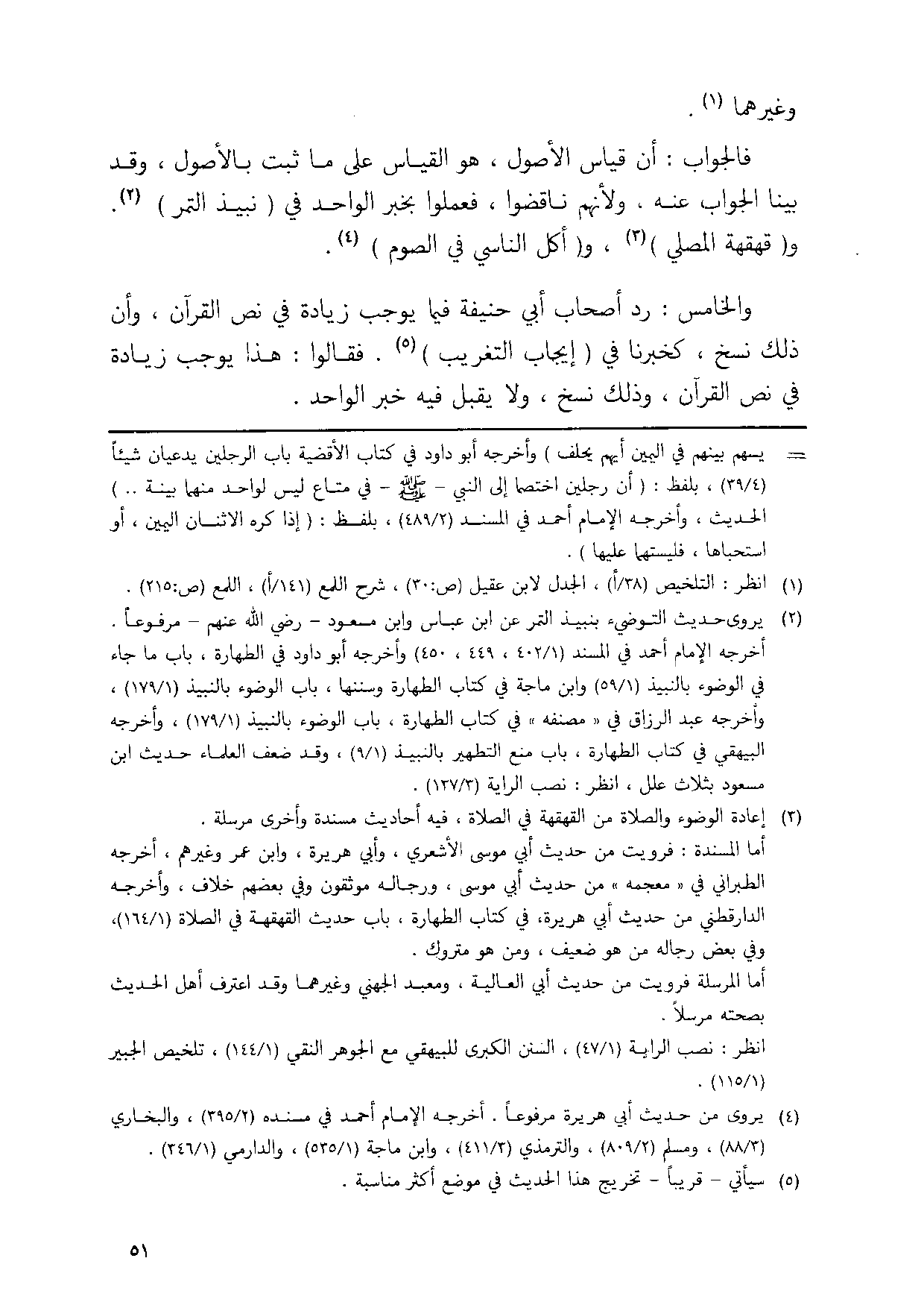 وَالْخَامِس رد اصحاب ابي حنيفَة فِيمَا يُوجب زِيَادَة فِي نَص الْقُرْآن وان ذَلِك نسخ كخبرنا فِي ايجاب التَّغْرِيب فَقَالُوا هَذَا يُوجب زِيَادَة فِي نَص الْقُرْآن وَذَلِكَ نسخ وَلَا يقبل فِيهِ خبر الْوَاحِد