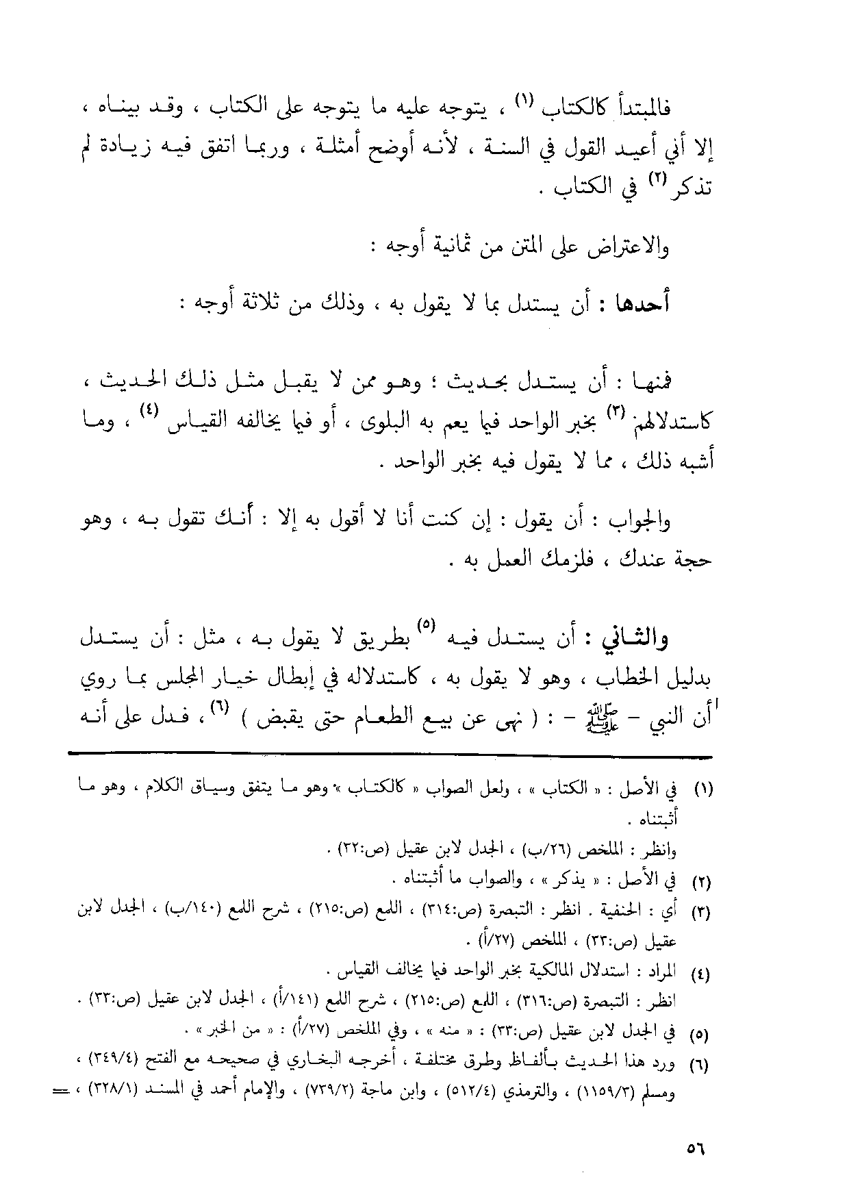 والاعتراض على الْمَتْن من ثَمَانِيَة اوجه